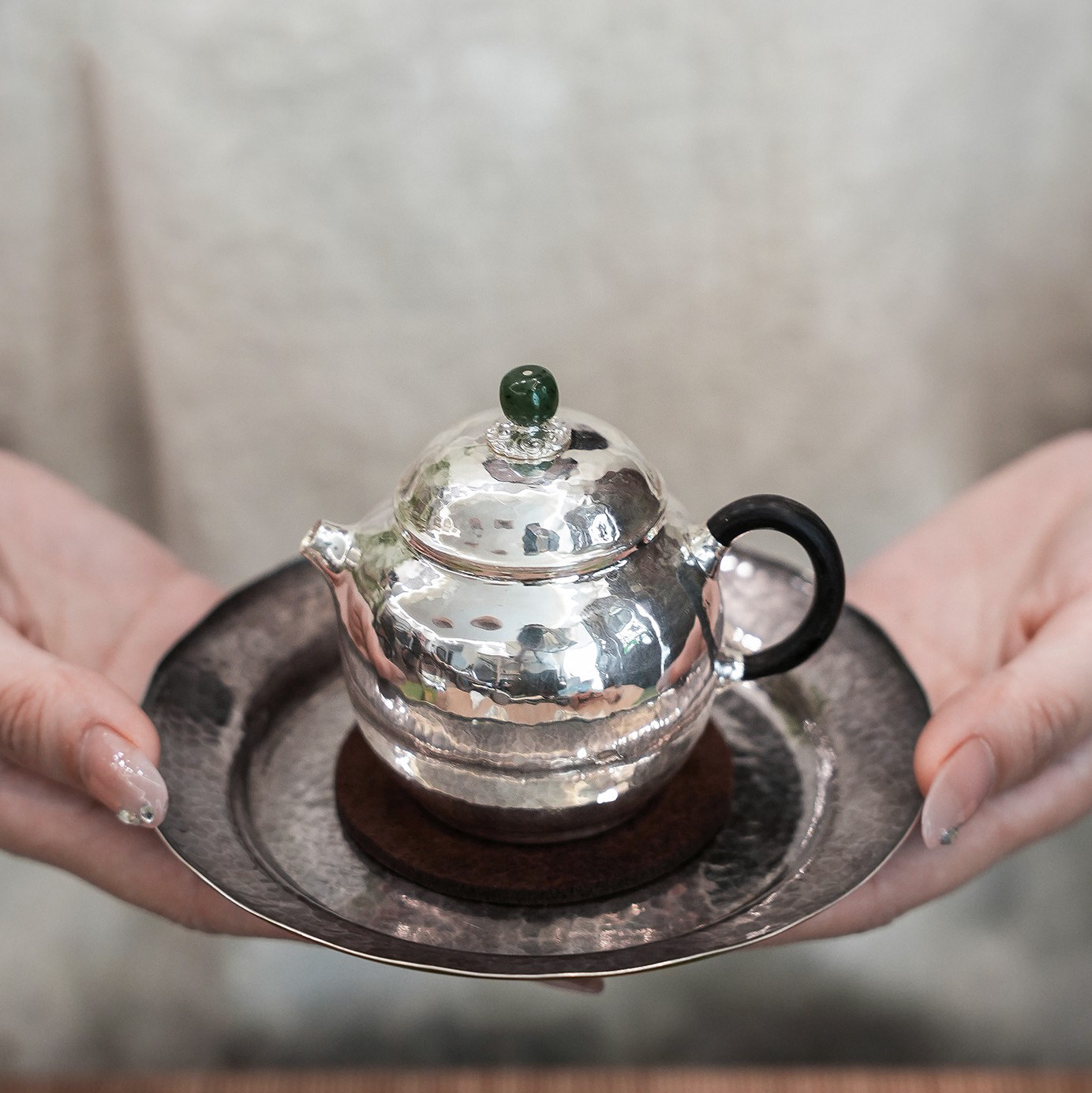 纯银时代手工足银炮口宫灯泡茶壶