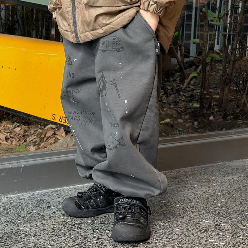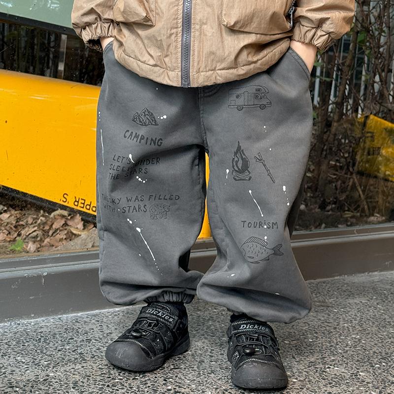 米修叻男童加绒裤子秋冬款2024新品儿童一体绒甩漆休闲裤洋气外穿