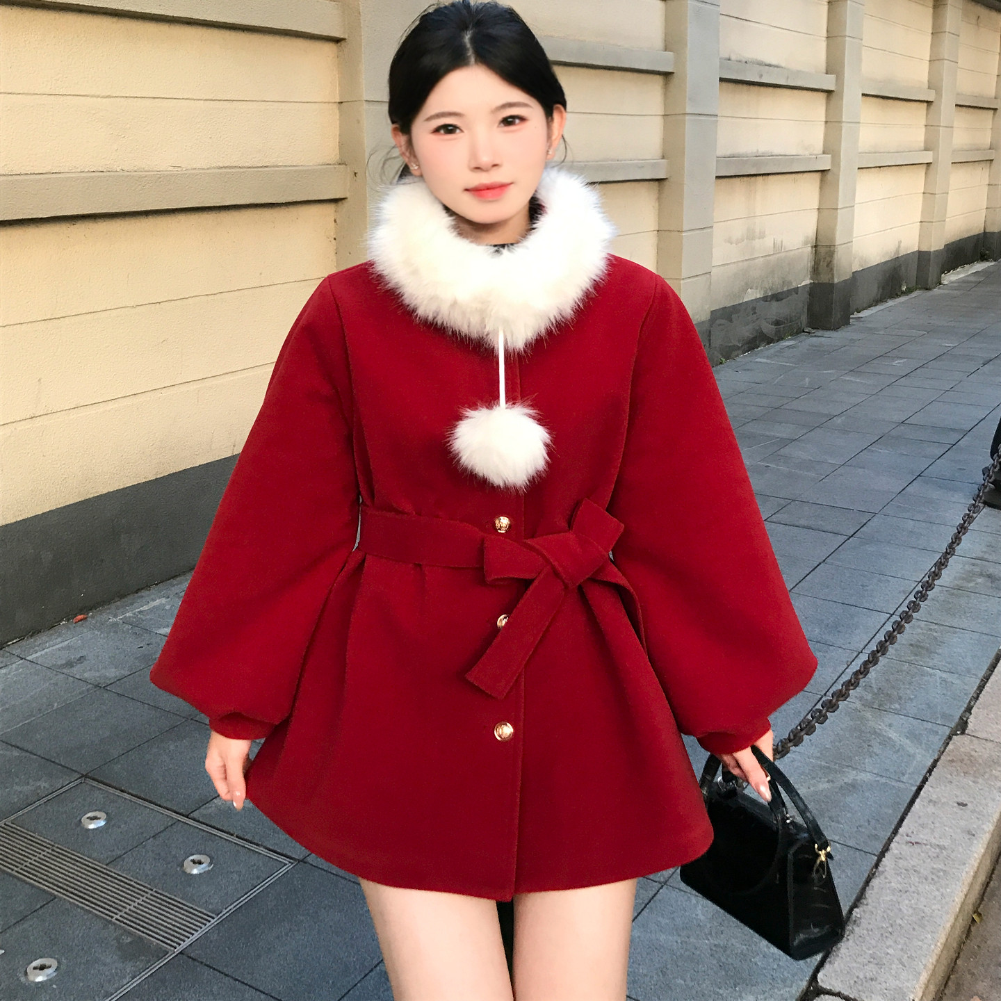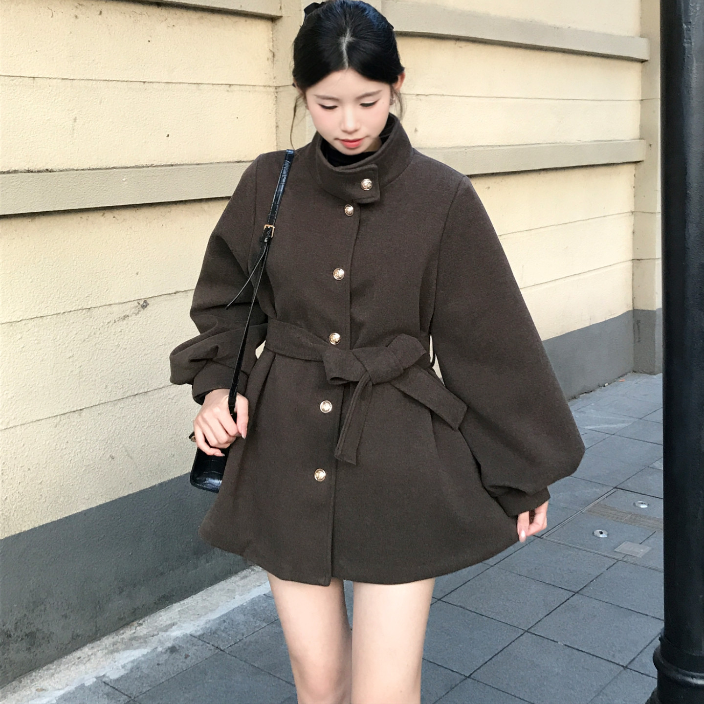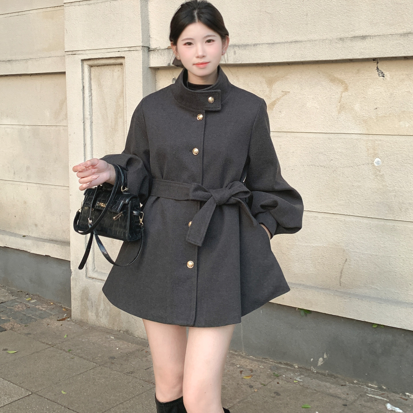 bule蓝色星球韩系立领毛呢外套女秋冬季2026年加厚小个子呢子大衣