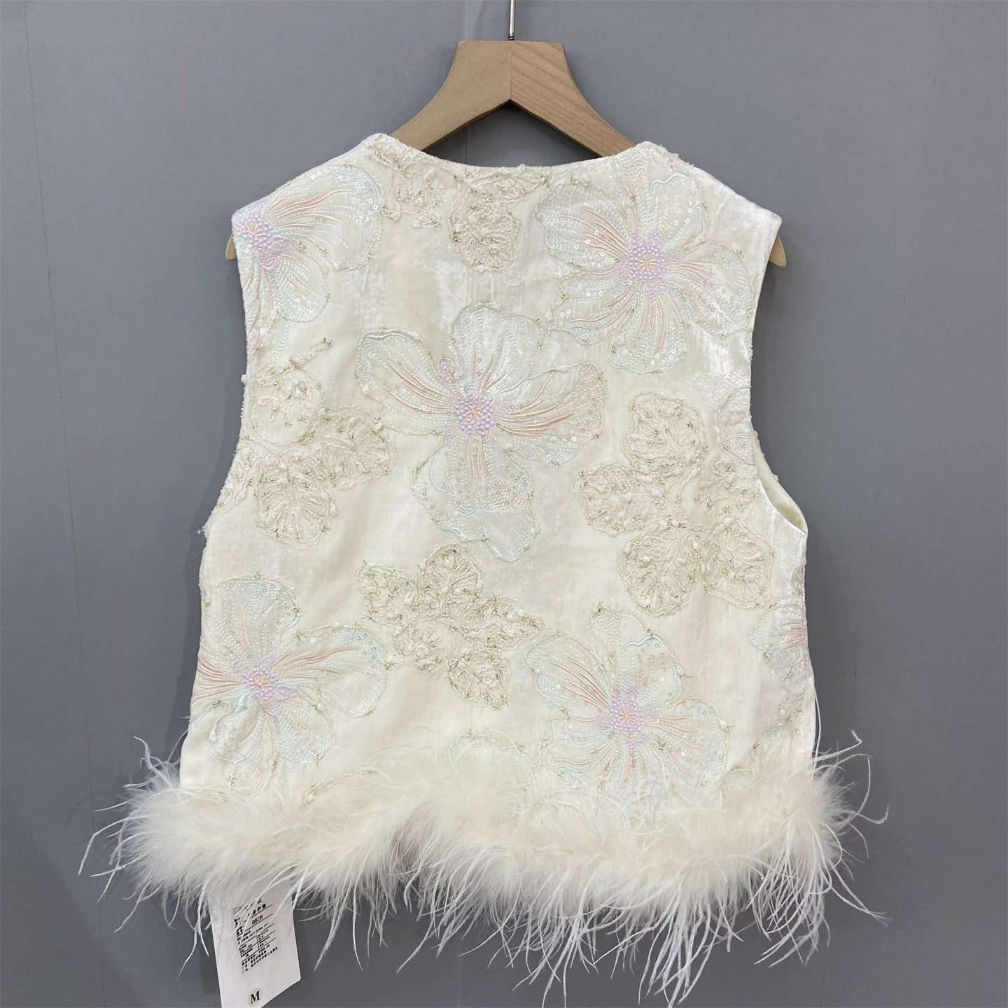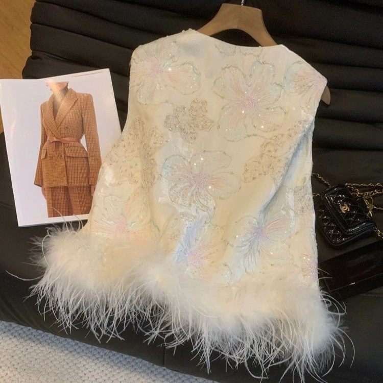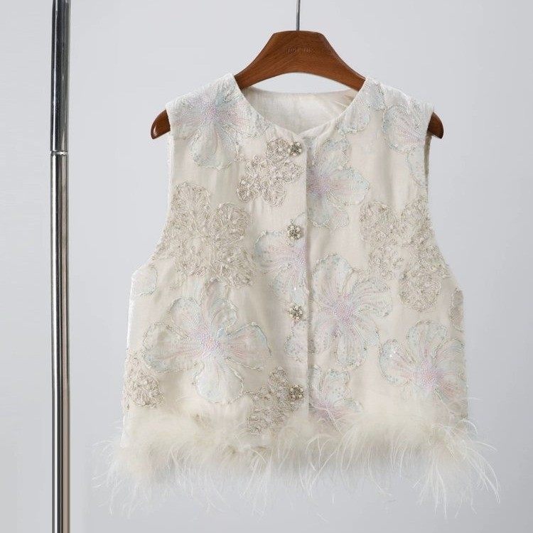 新中式重工刺绣羽毛马甲女外搭
