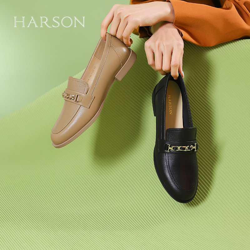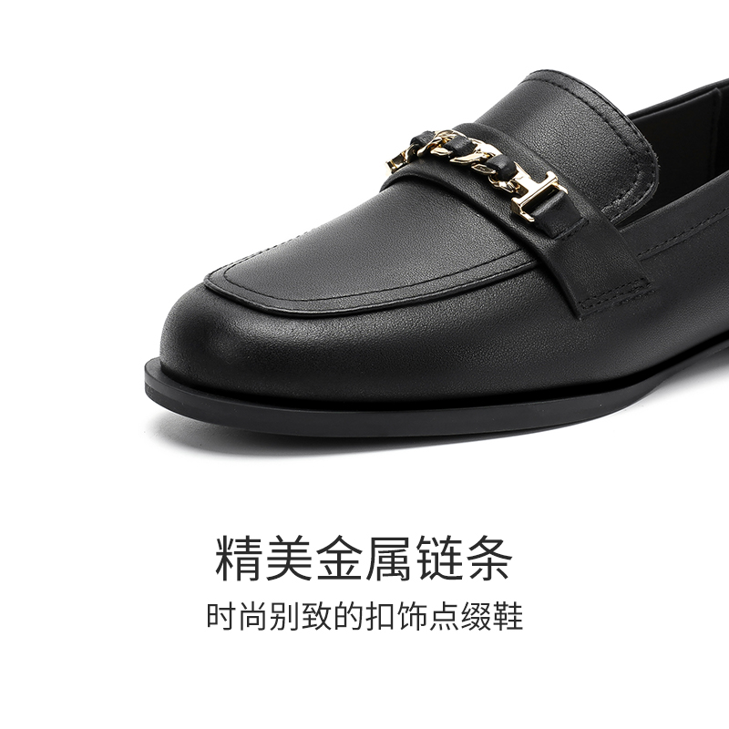 哈森英伦乐福鞋女春秋新款软面小皮鞋平底一脚蹬女鞋HS242518