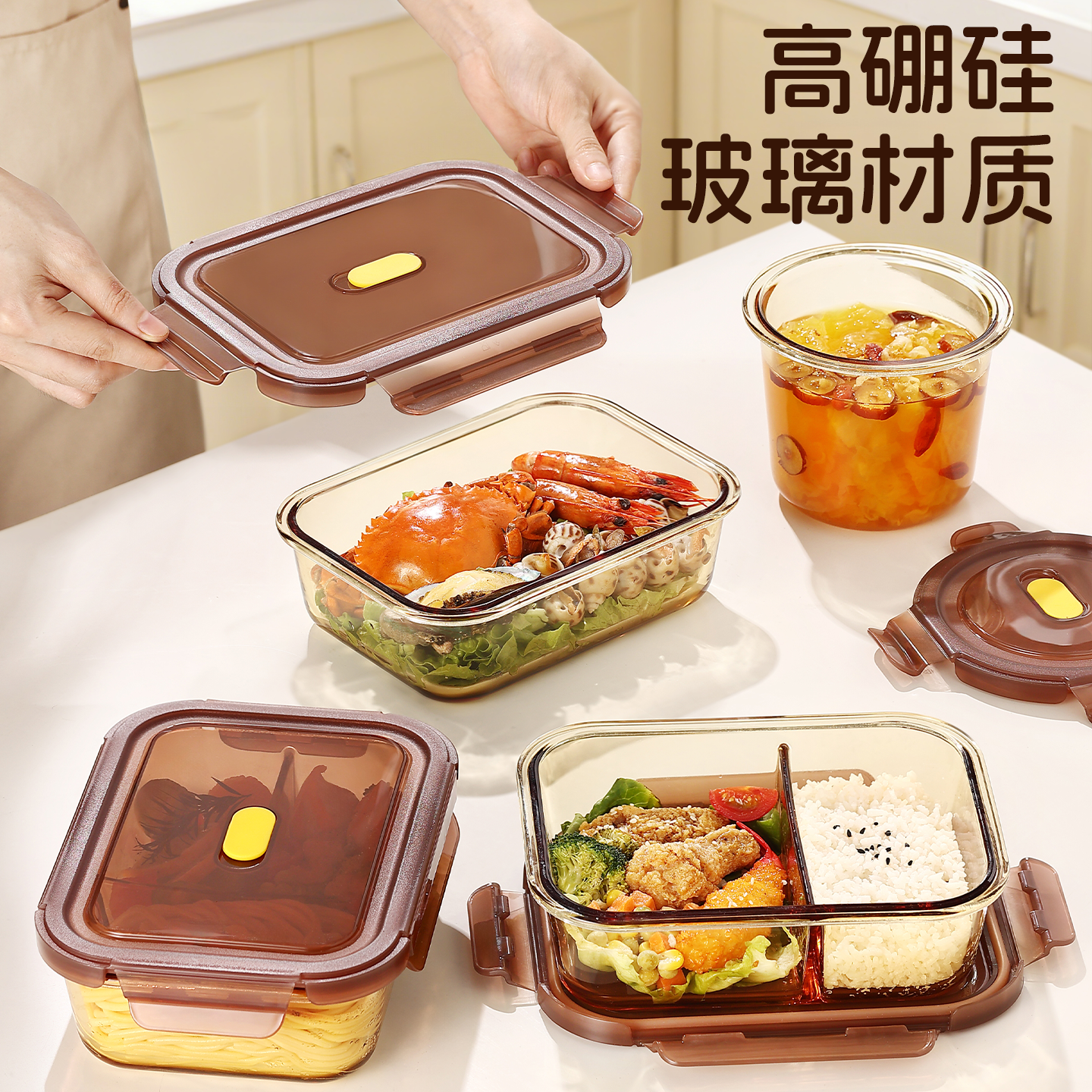 TAFUCO/泰福高高硼硅耐热玻璃碗微波炉加热上班族盒玻璃保鲜盒