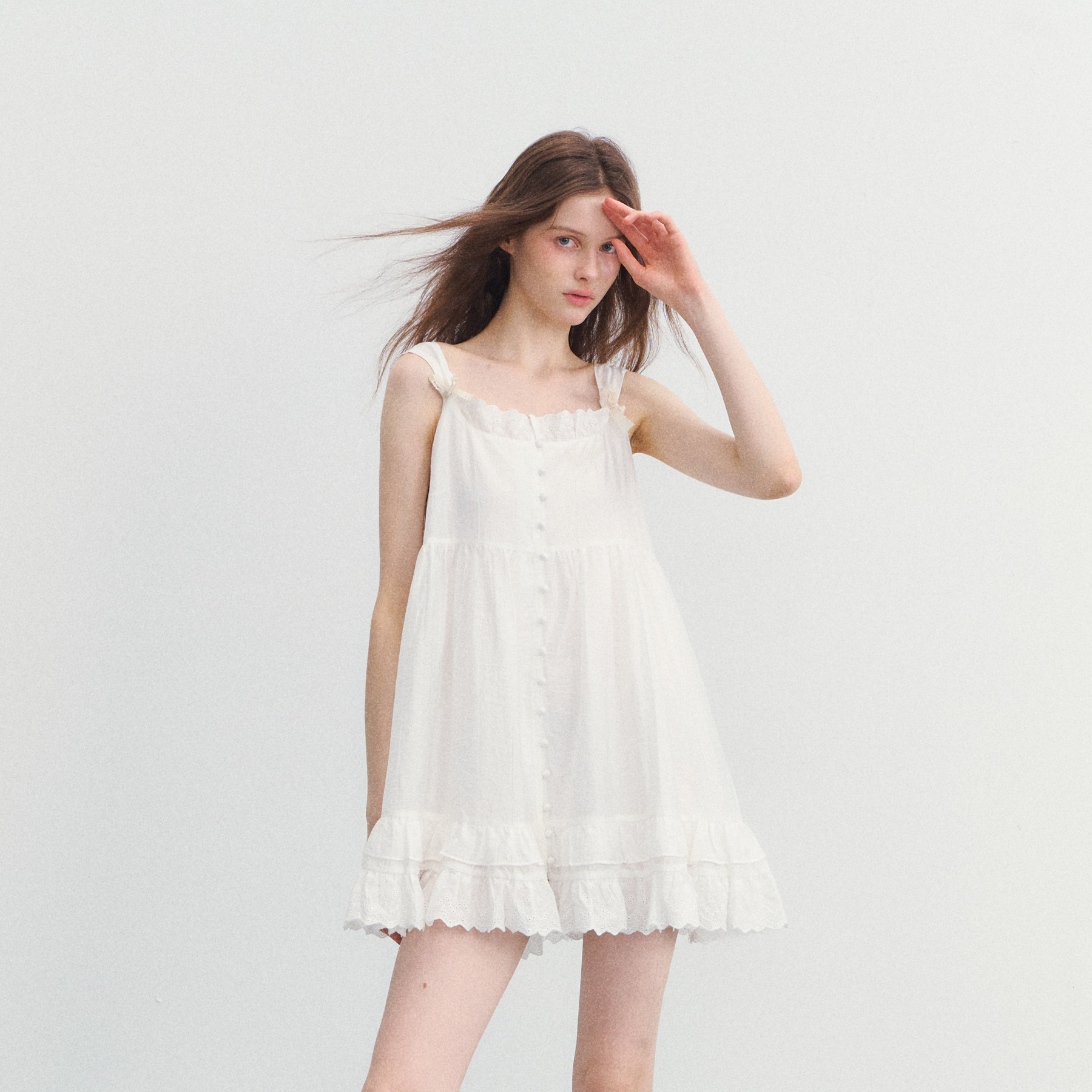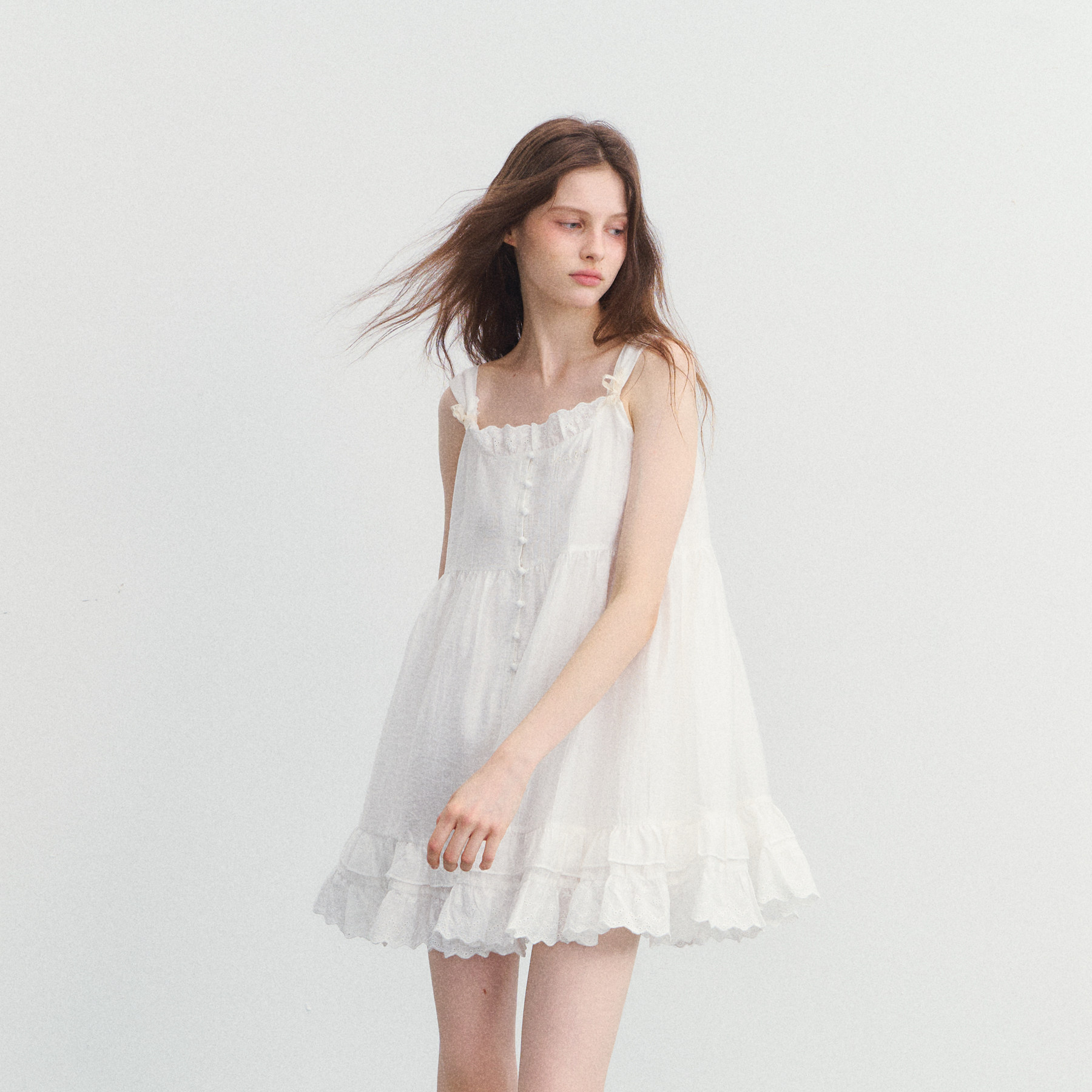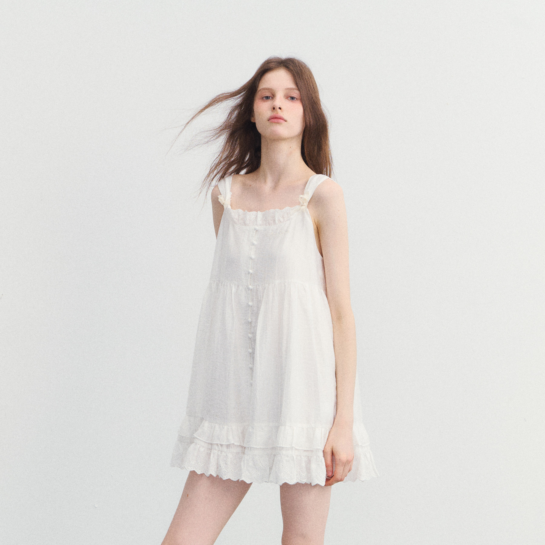 SPEAR YOUTH“花房奇遇”天丝法式白色吊带连衣裙蕾丝拼接短裙