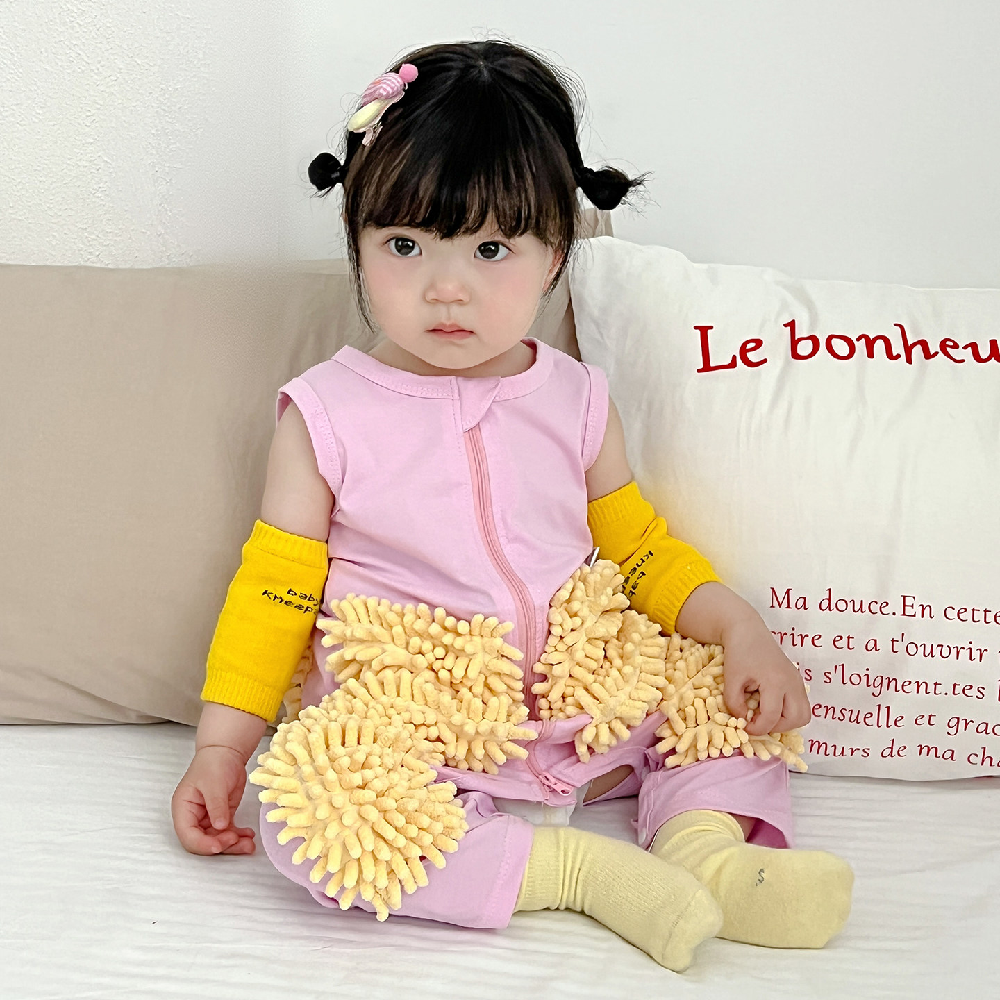 宝宝拖地爬爬服婴儿拖把侠爬行服擦地防脏连体春秋夏天薄款短袖