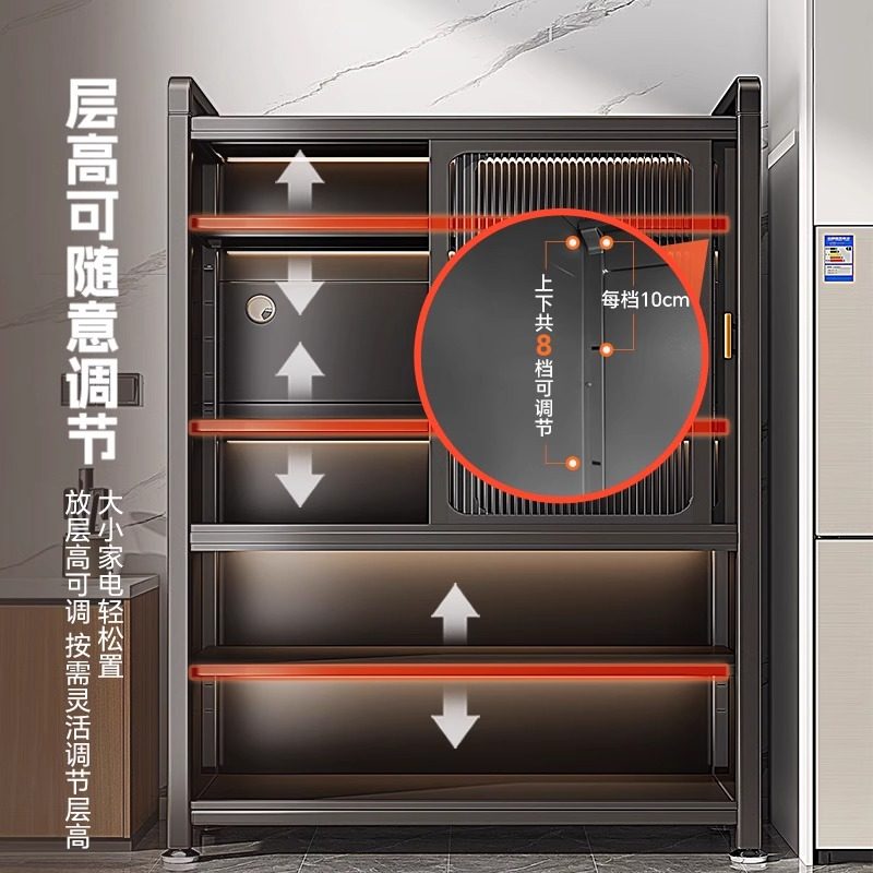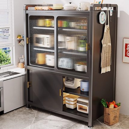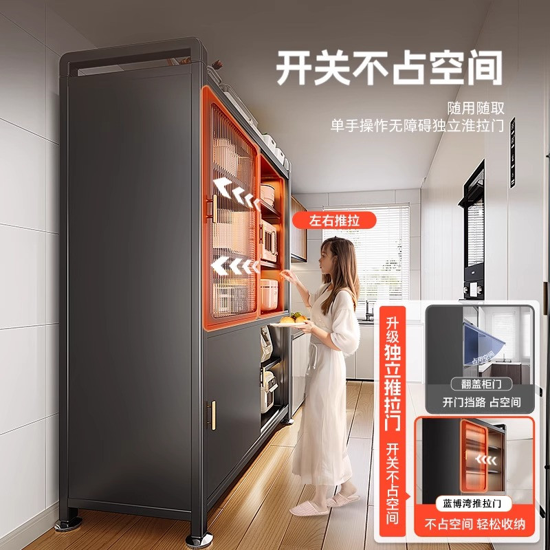 厨房置物架多层推拉门锅碗收纳柜家用餐边落地多功能储物橱柜