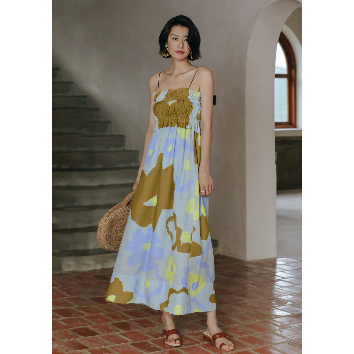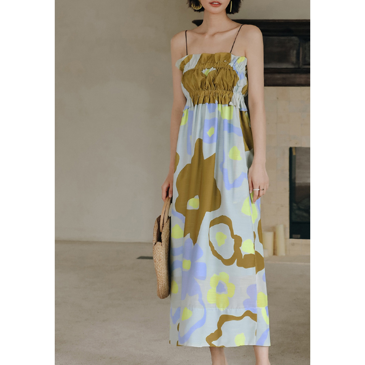 弥古波西米亚抹胸吊带连衣裙法式油画长裙女夏三亚海边度假沙滩裙