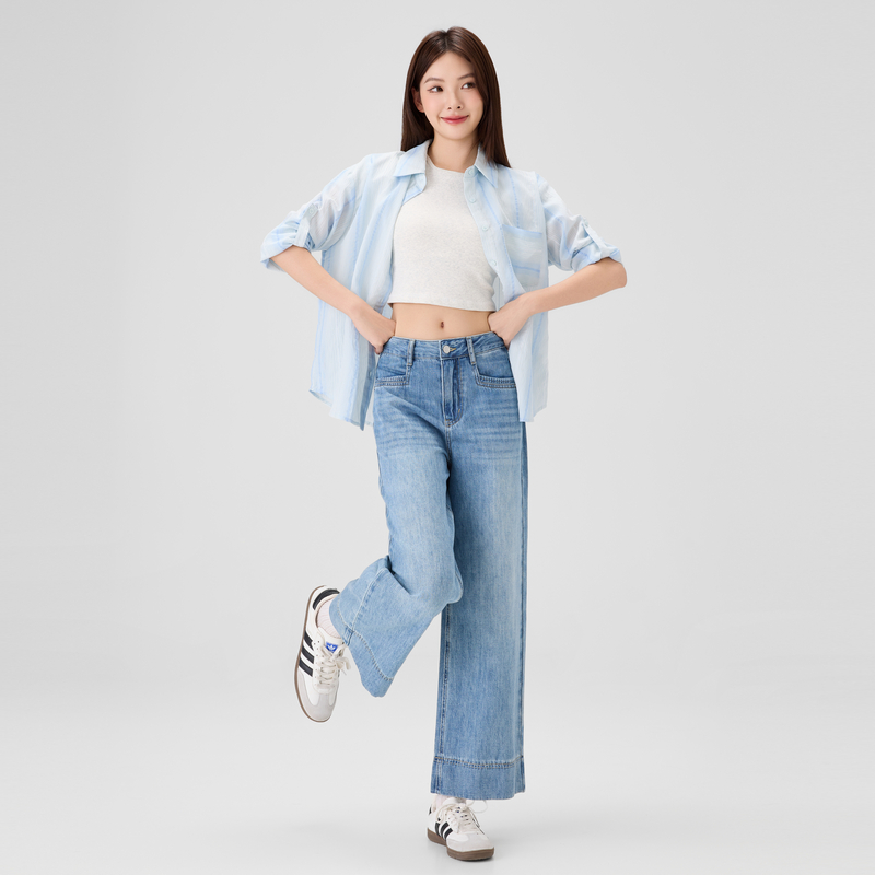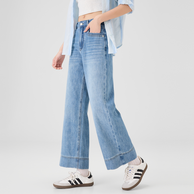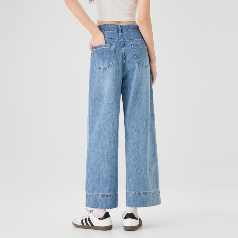 快鱼牛仔裤2025夏季新款宽松舒适轻薄透气九分直筒阔腿裤女夏薄款