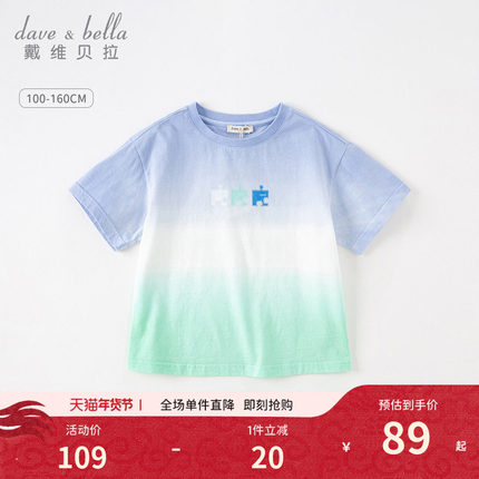 戴维贝拉儿童短袖2026男童渐变T恤男大童夏装上衣男孩体恤童装男