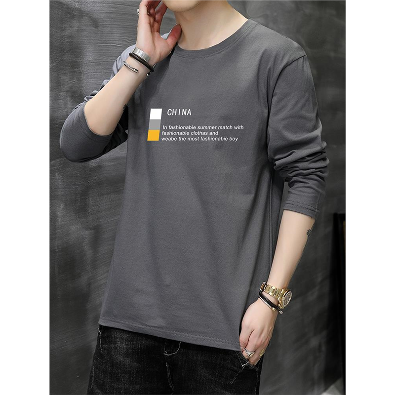 以纯YISHION纯棉白色长袖t恤男生秋季青少年圆领上衣打底衫秋装潮