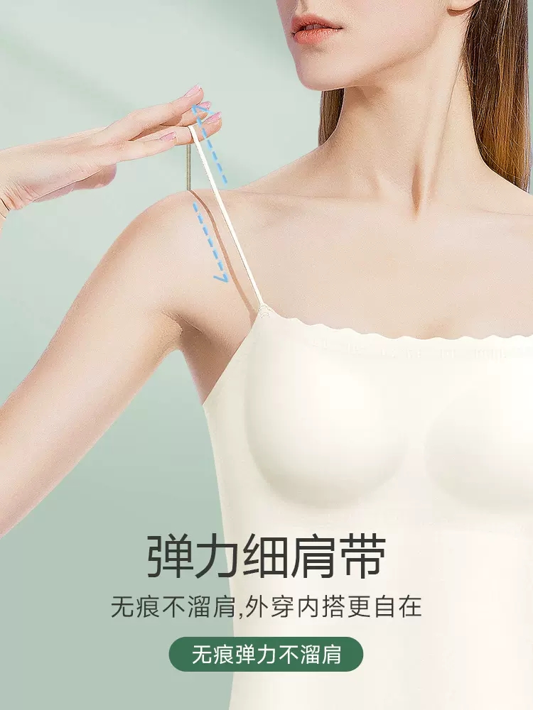美背内衣白色打底吊带背心女内搭遮肚子带胸垫一体长款抹胸文胸夏
