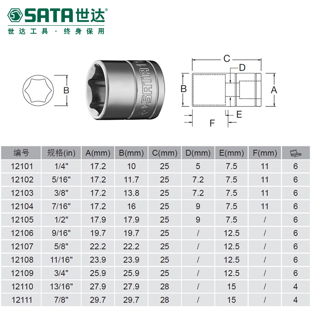 世达工具英制套筒头10mm3/8标准中飞六角套筒电动扳手套筒套管