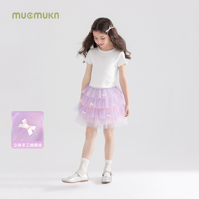 【甜心芭蕾】女童蝴蝶结梦幻粉紫蛋糕裙夏季新款柔软透气网纱腰裙
