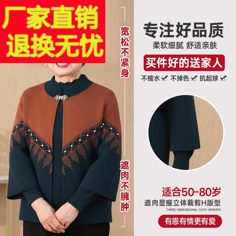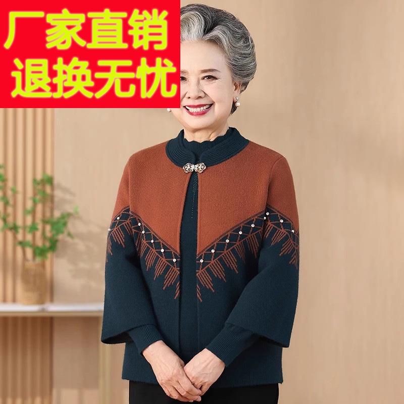 老年人秋装女奶奶套装洋气妈妈春秋外套老人毛衣开衫老太太两件套