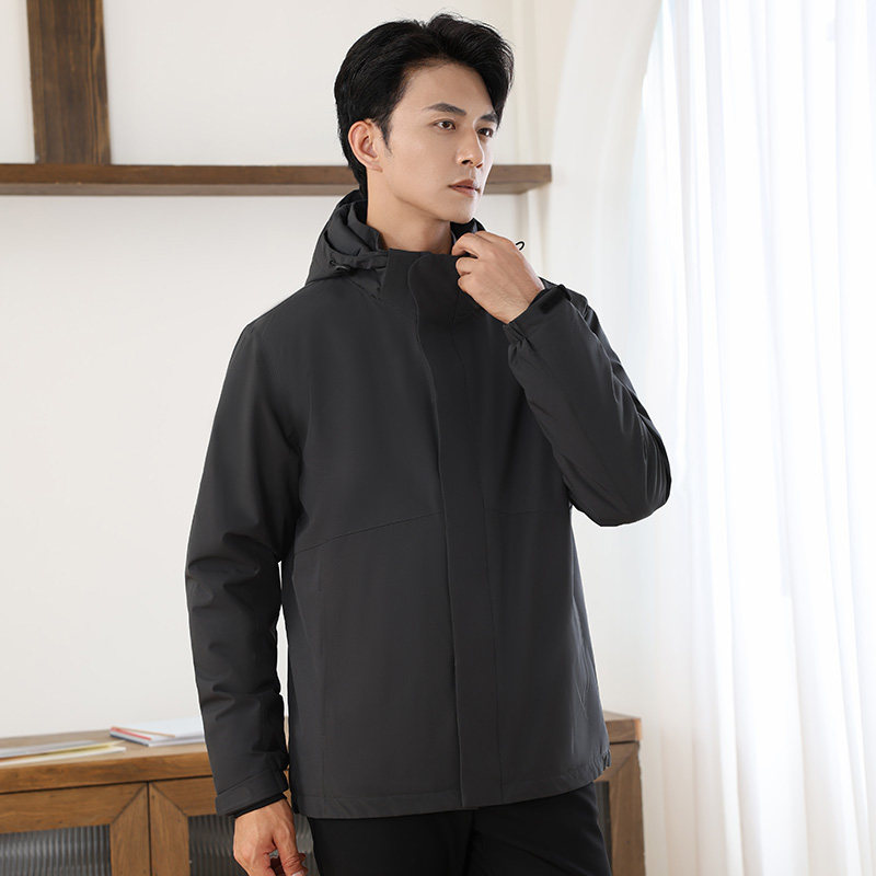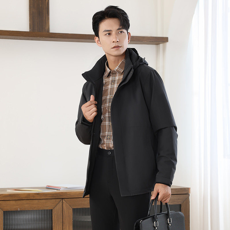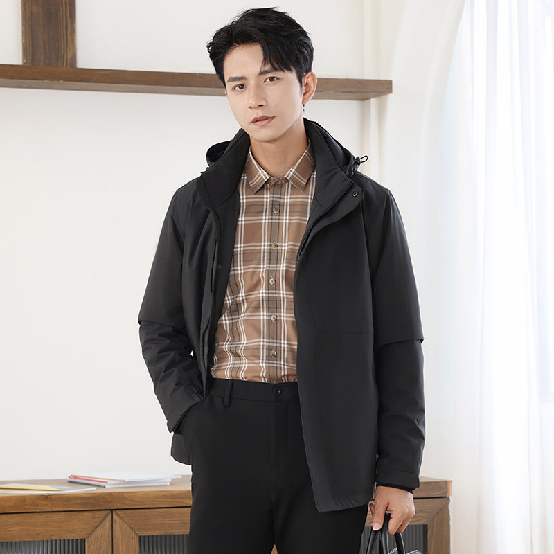 乔治白秋冬男拉链羽绒服休闲纯色外套防风保暖通勤带帽日常上衣