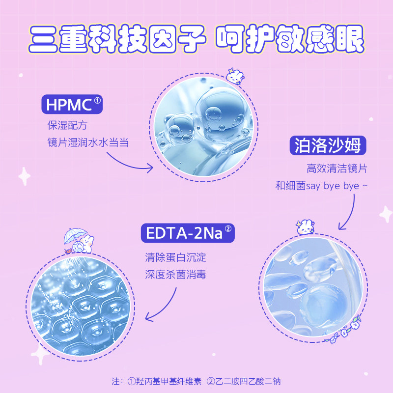 【自营】海俪恩护理液软萌兔隐形眼镜美瞳软镜大小瓶500+120正品