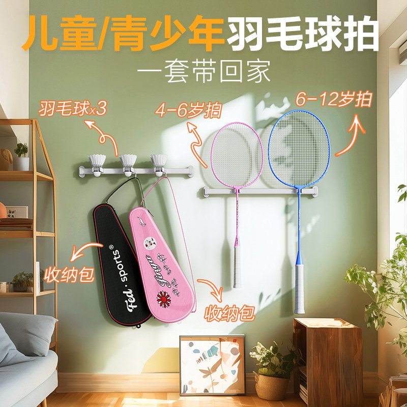 儿童羽毛球拍小学生青少年专用幼儿园亲子套装正品耐打单双拍超轻