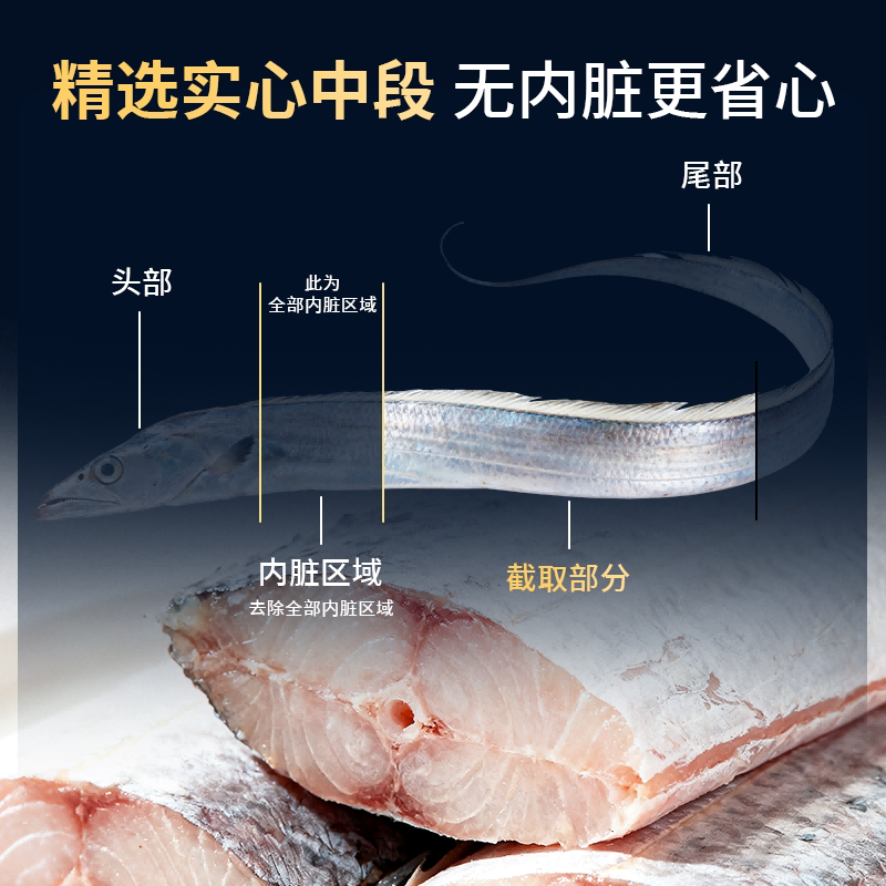 渔在深海舟山东海带鱼段舟山小眼睛纯实心带鱼段无内脏黄金中段