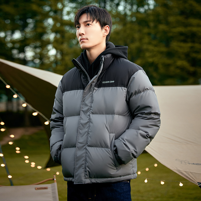 拓路者冬季立领90绒羽绒服男女款短款保暖加厚面包服潮款宽松外套