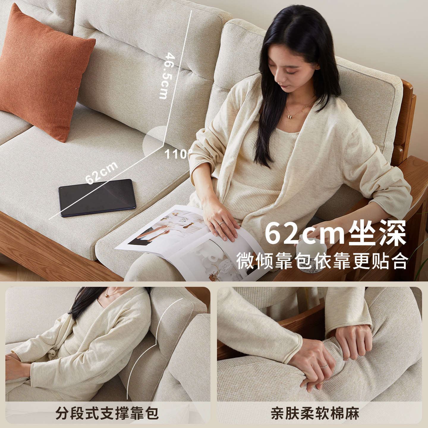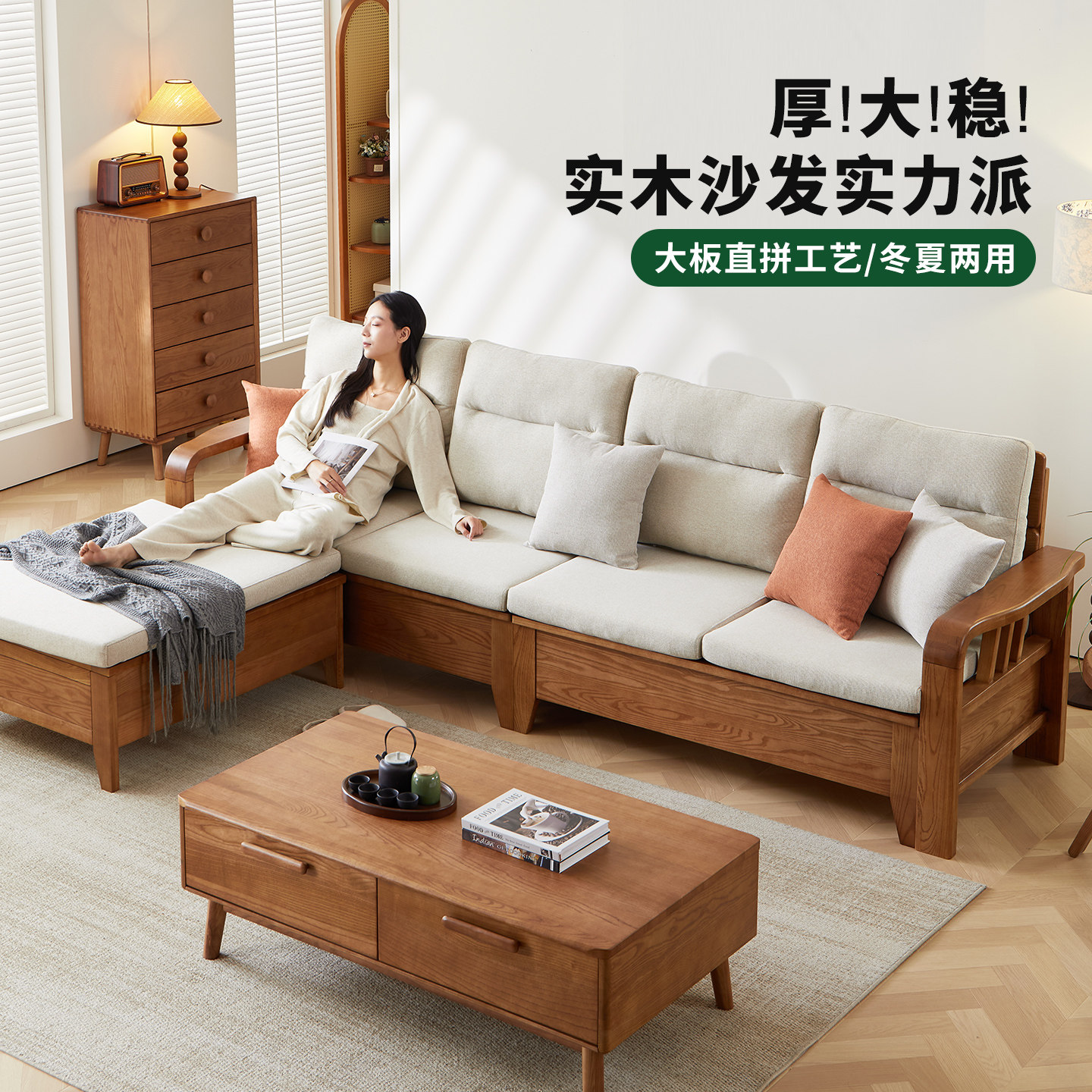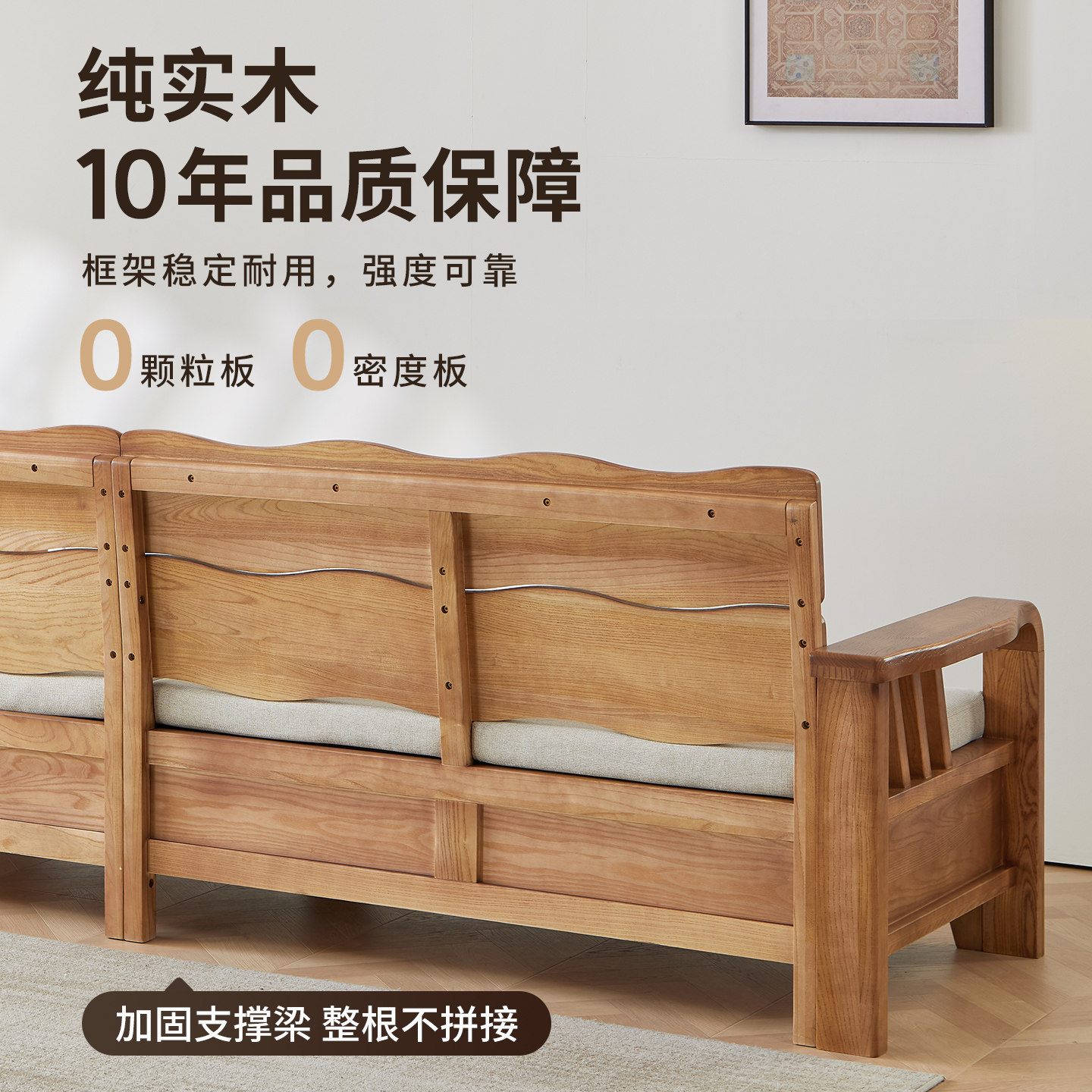 一林半舍白蜡木实木沙发现代简约客厅高靠背沙发冬夏两用储物沙发