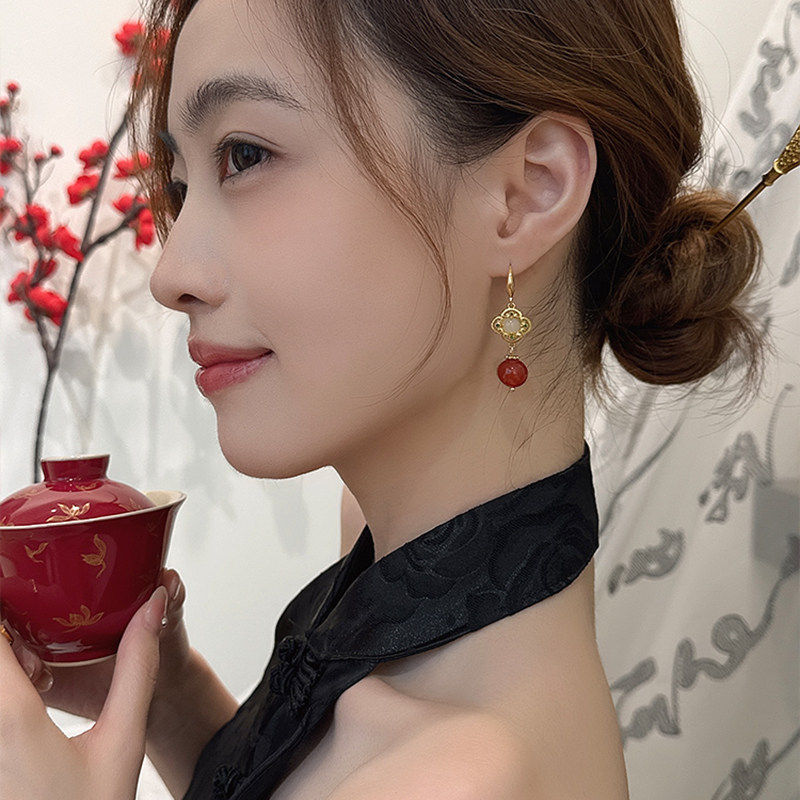 新中式国风红色耳环2026新款爆款高级感轻奢小众气质耳坠过年耳饰