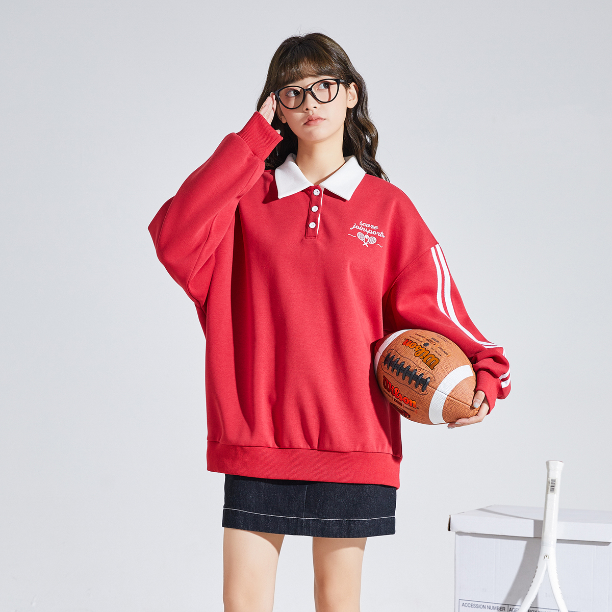 唐狮新款长袖卫衣polo衫女春秋季宽松百搭设计感小众爆款上衣