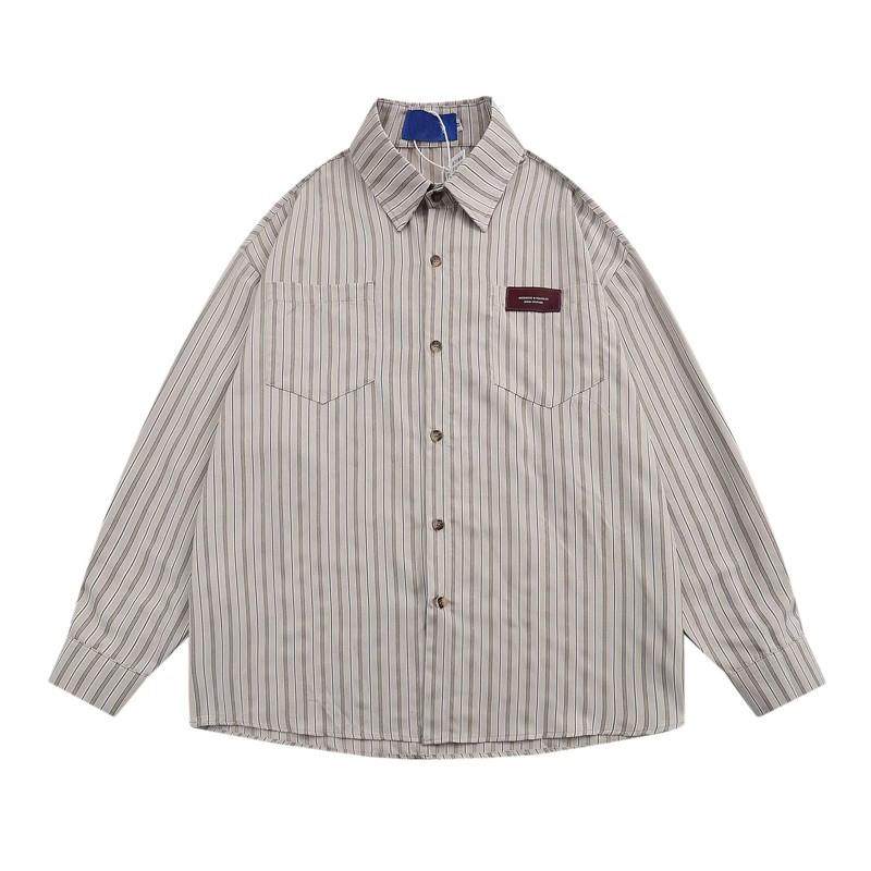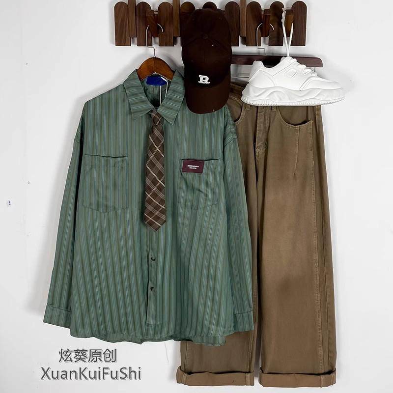 春秋季潮牌复古学院风条纹长袖衬衫男女宽松帅气ins情侣休闲衬衣