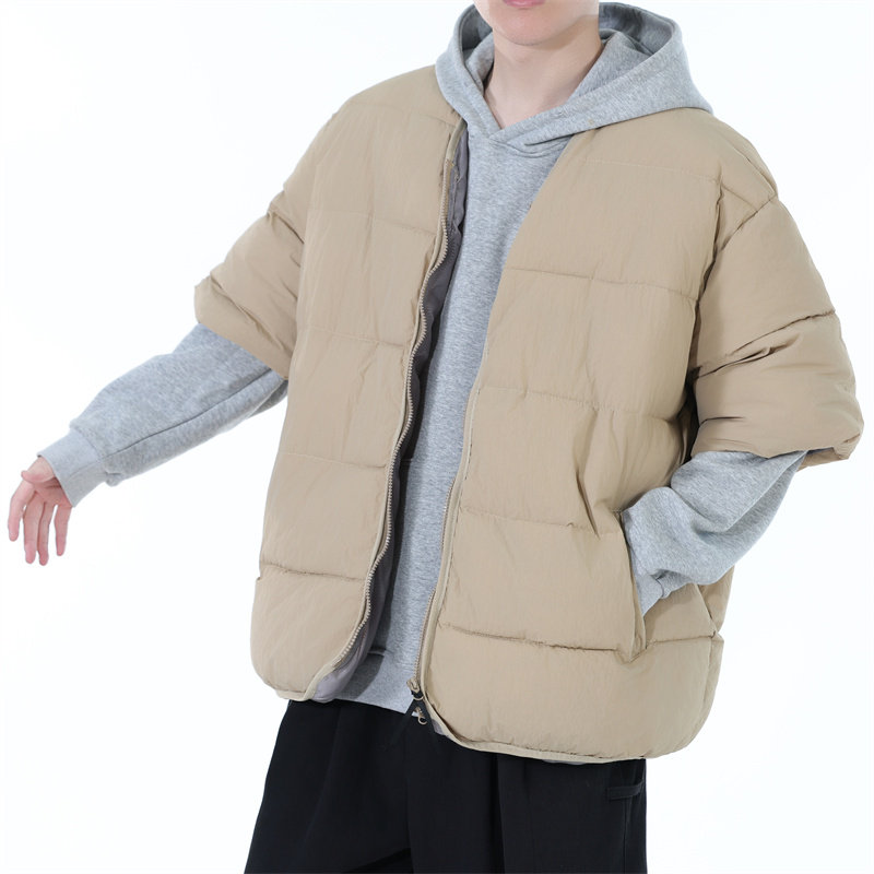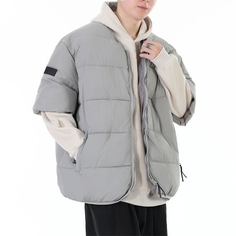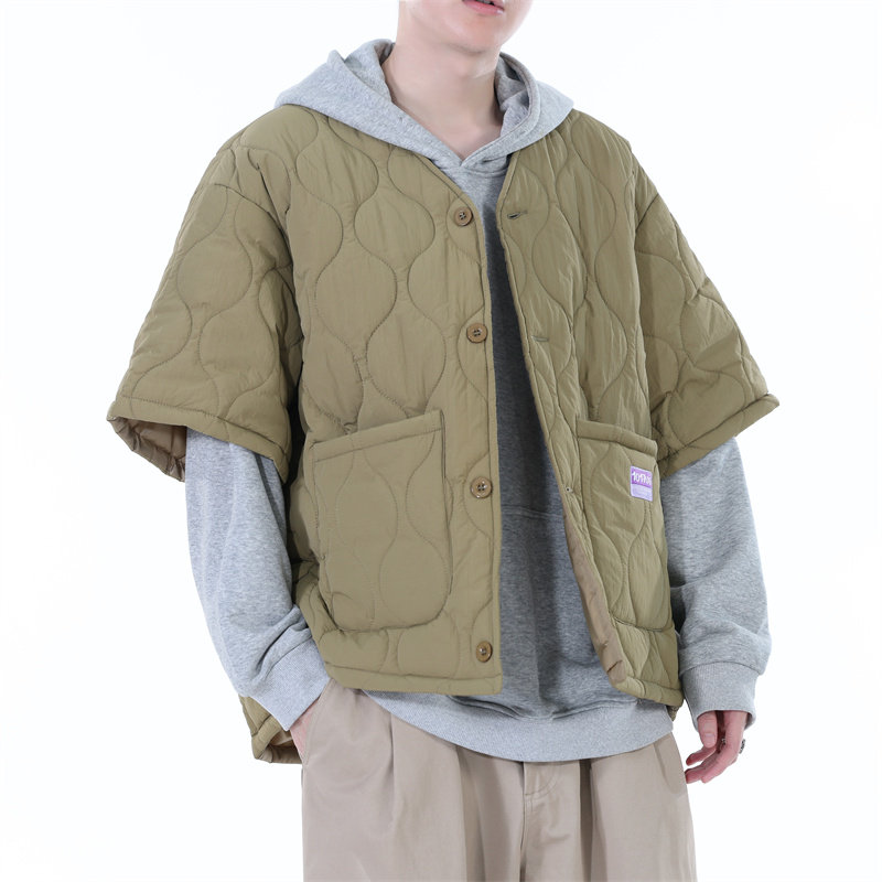 2025秋冬新款五分袖马甲外穿男款百搭宽松坎肩潮牌嘻哈羽绒棉马夹