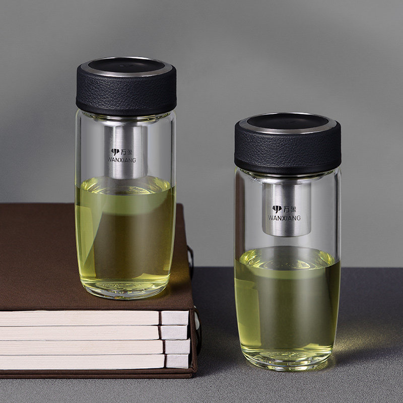 万象单层玻璃杯子女士加厚泡茶杯家用商务办公时尚曲线大肚水杯