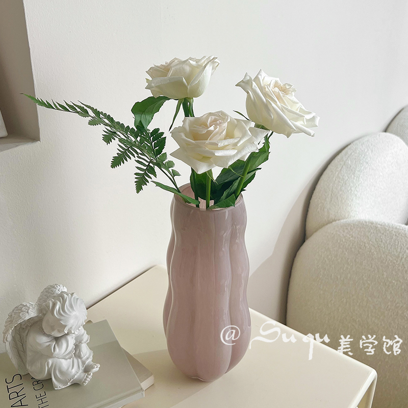 简约现代轻奢粉色花瓶客厅插花玻璃花器餐客厅摆件高级感软装饰品
