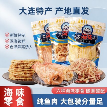 大连特产鱿鱼丝手撕鲜烤即食鱿鱼干鳕鱼片海鲜零食海干货下酒小吃