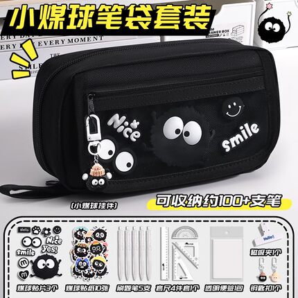 带提手小煤球笔袋女生高颜值ins风2025新款超火文具盒一年级大容量简约铅笔盒小学生学习用品小众不撞款痛包