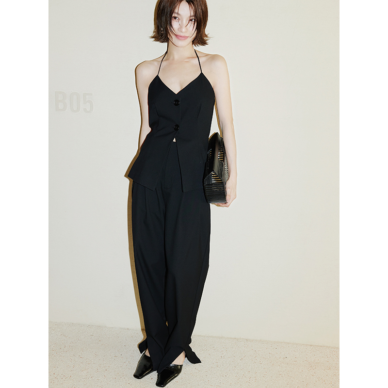 WEINISIAN朱小姐 小众设计西装套装女马甲吊带裤子两件套女