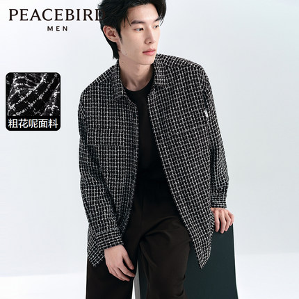 【小香风】太平鸟男装 休闲衬衫春秋时尚阔版休闲衬衣男士上衣潮