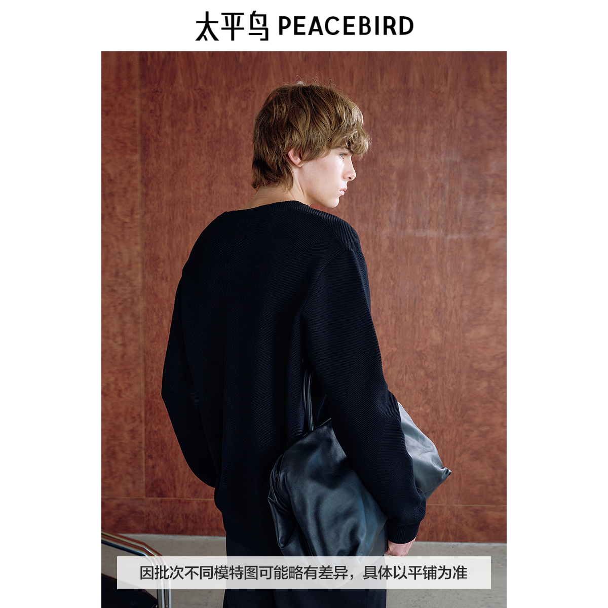【商场同款】太平鸟男装黑色圆领毛衣冬新款柔软针织衫B1EBE4242