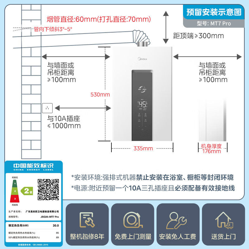 美的零冷水燃气热水器天然气家用16升双增压恒温水伺服MT7Pro