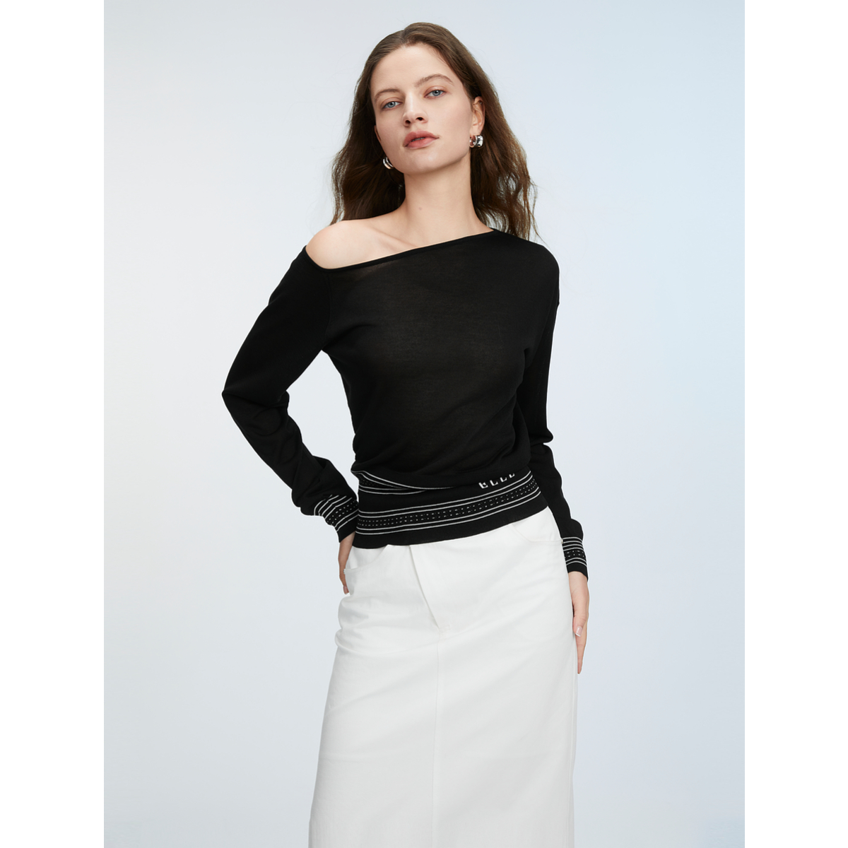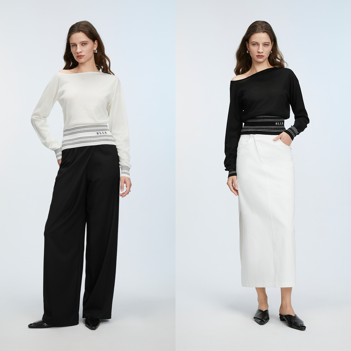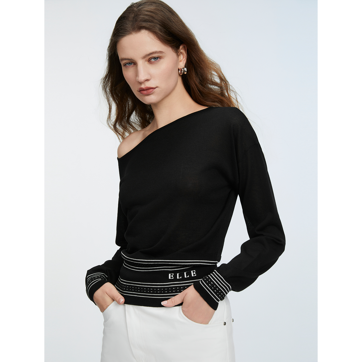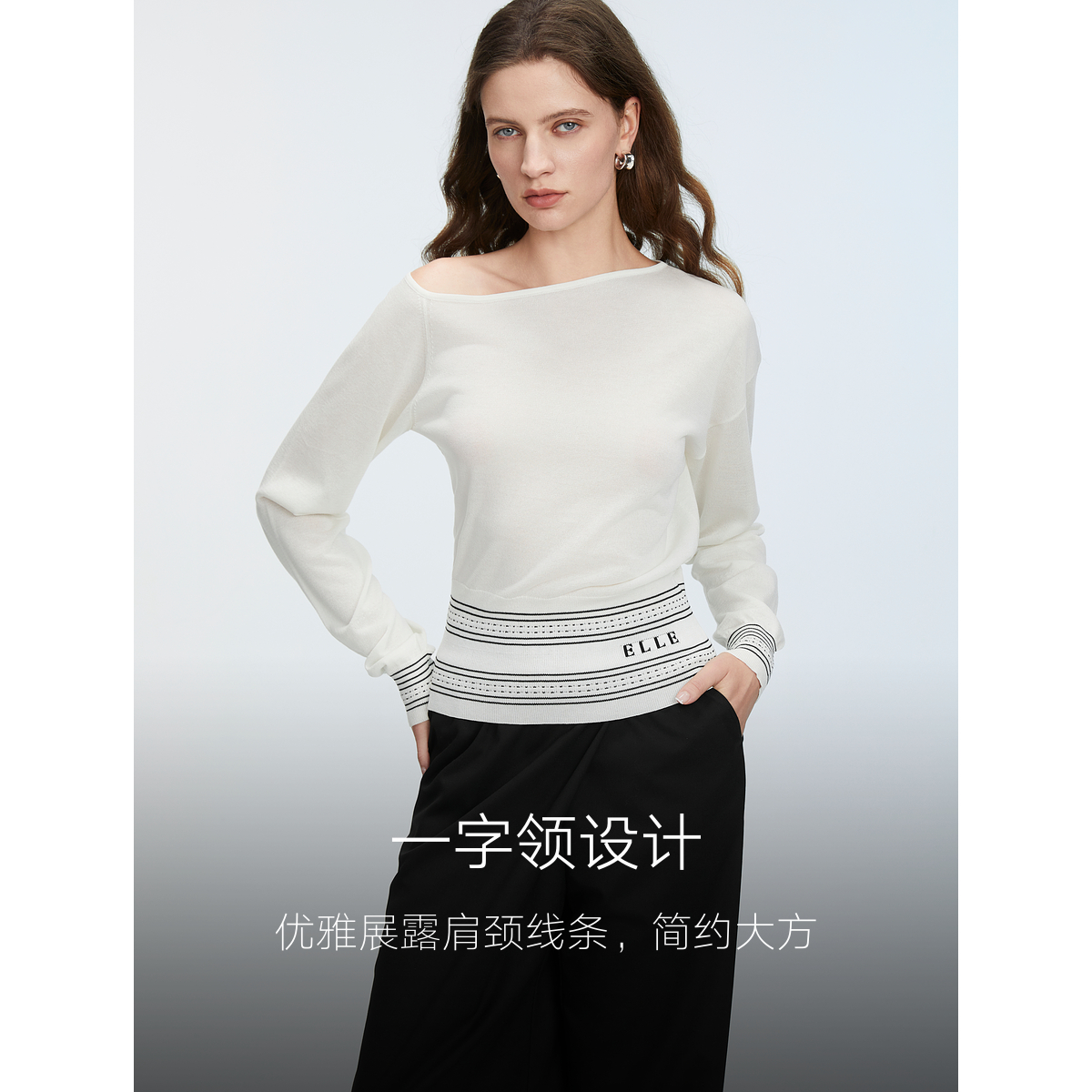 【商场同款】ELLE莱赛尔天丝一字领针织衫女2025秋季新款别致上衣