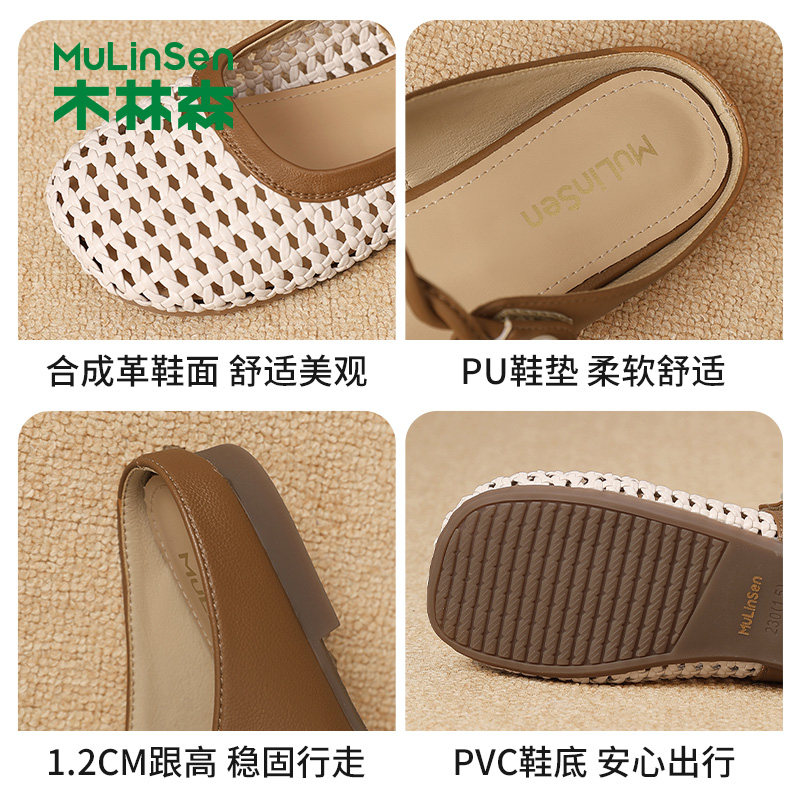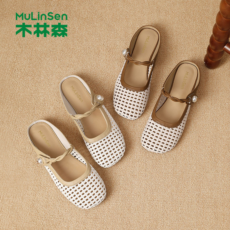 木林森凉鞋女2025年夏季新款镂空外穿包头半拖鞋平底百搭女穆勒鞋
