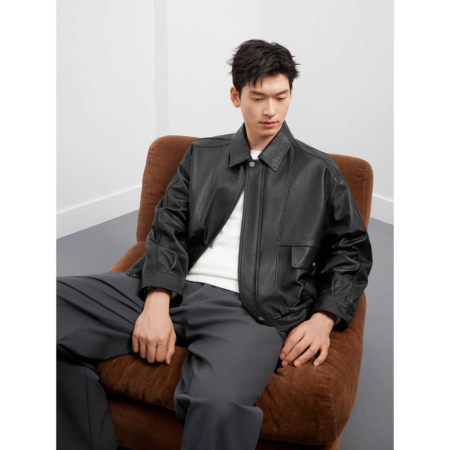 【羊皮】GXG男装 复古夹克宽松真皮皮衣休闲外套 25年秋新款