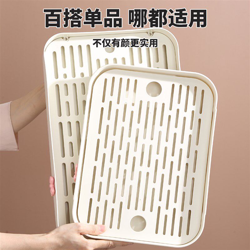 茶盘2025新款家用杯子放置盘塑料双层沥水托盘长方形客厅水果盘子