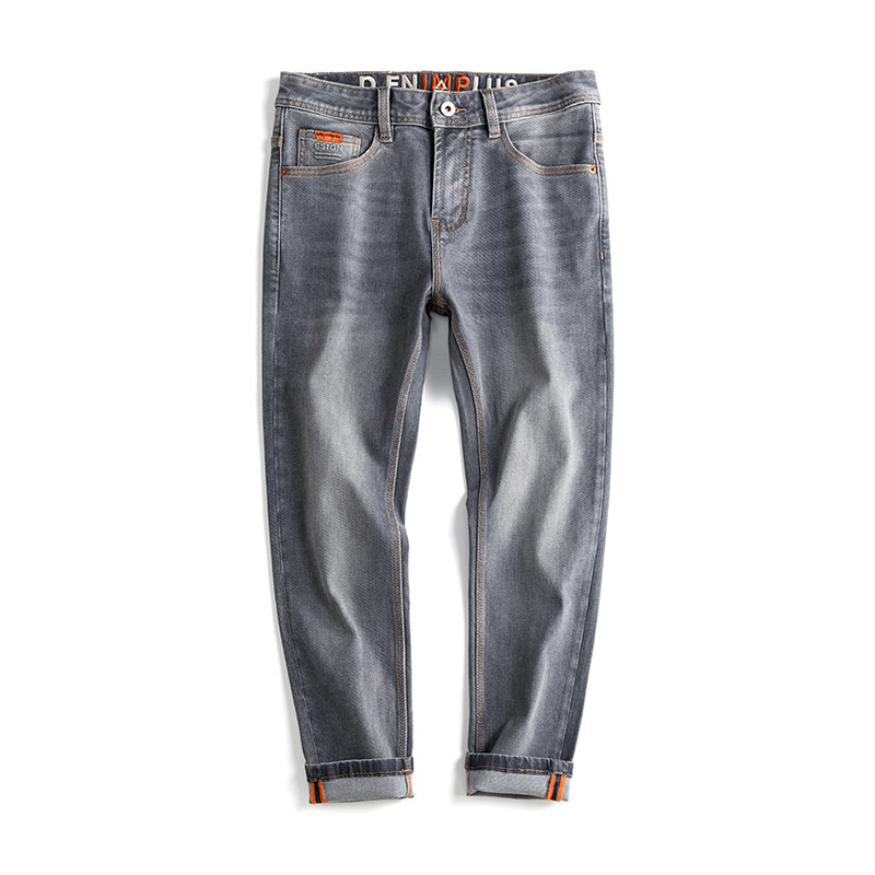 春夏牛仔裤男士灰色九分裤修身小脚9分弹力四季款百搭2个裤长选择