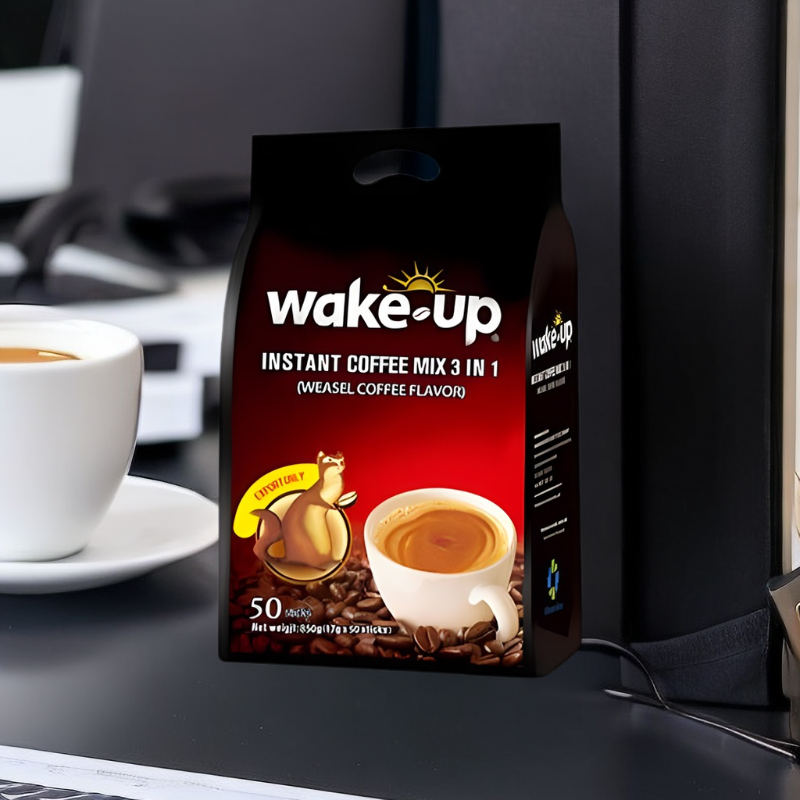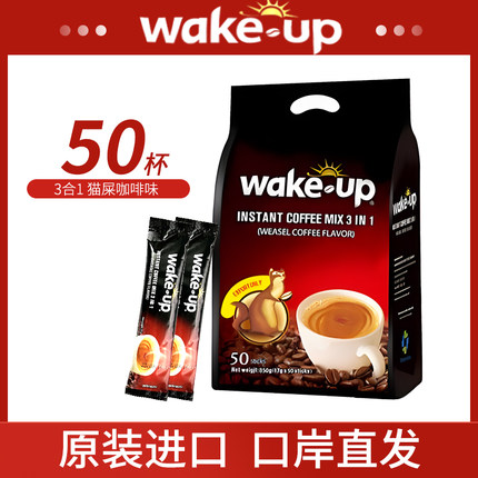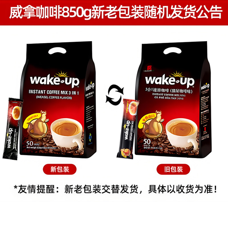 越南原装进口威拿wakeup猫屎咖啡味50条三合一速溶咖啡香浓850g
