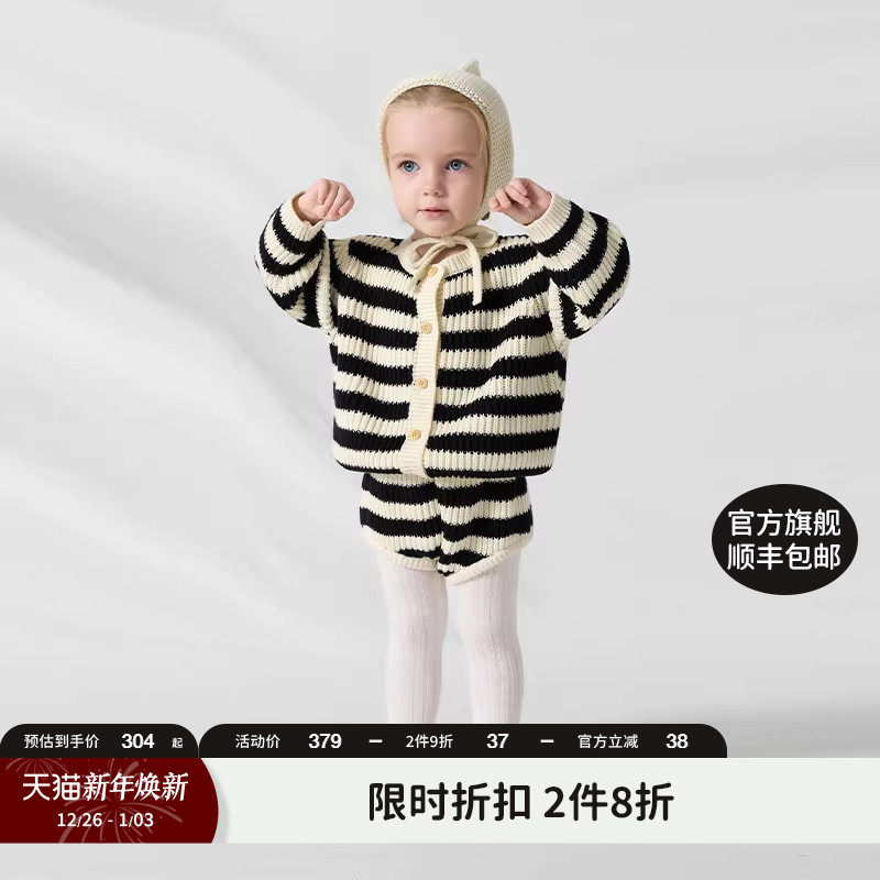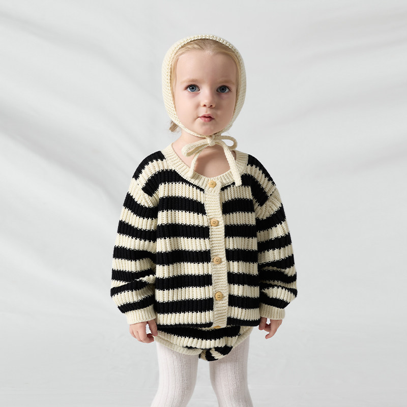 enhennbaby婴儿衣服针织套装春秋连体衣宝宝裤子新生儿开衫外套