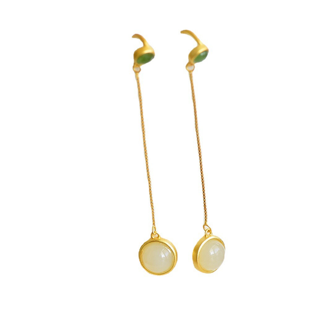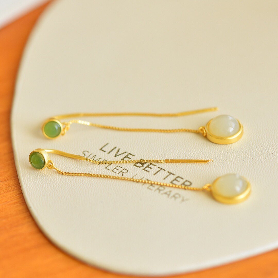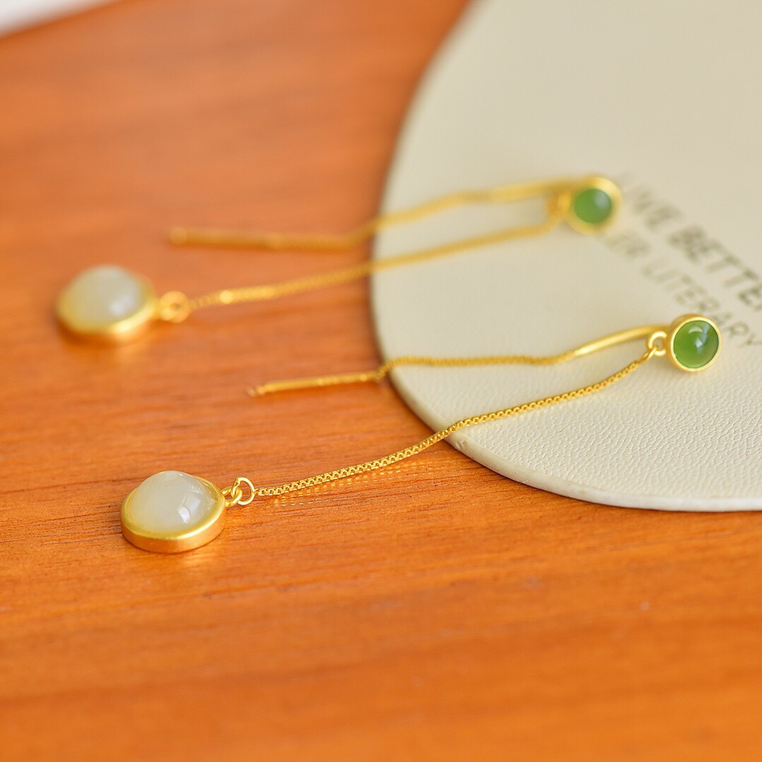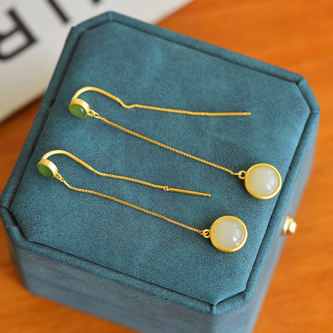 s925银镶和田玉时尚耳线天青色耳坠耳钉2025新款爆款耳饰耳环耳夹