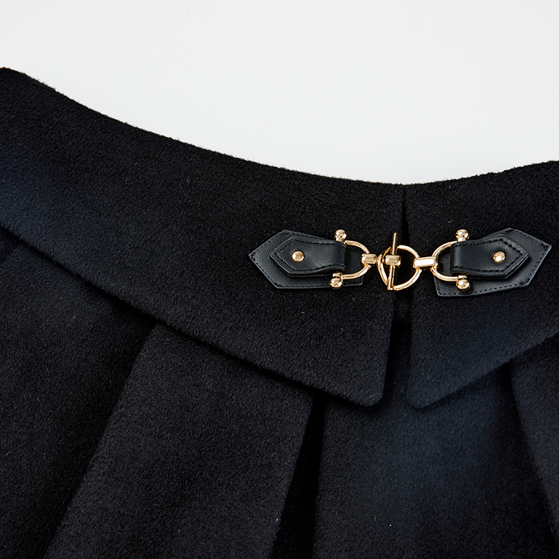 EIMISMOSOL黑色不规则的腰头翻折设计半身百褶短裙秋冬新款