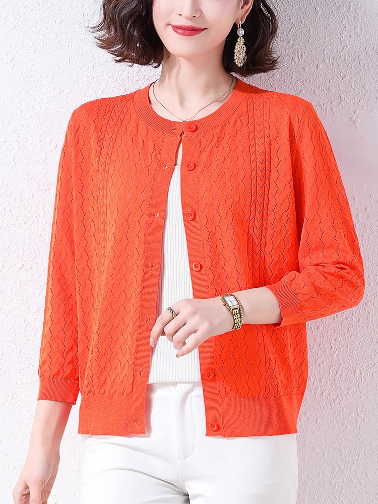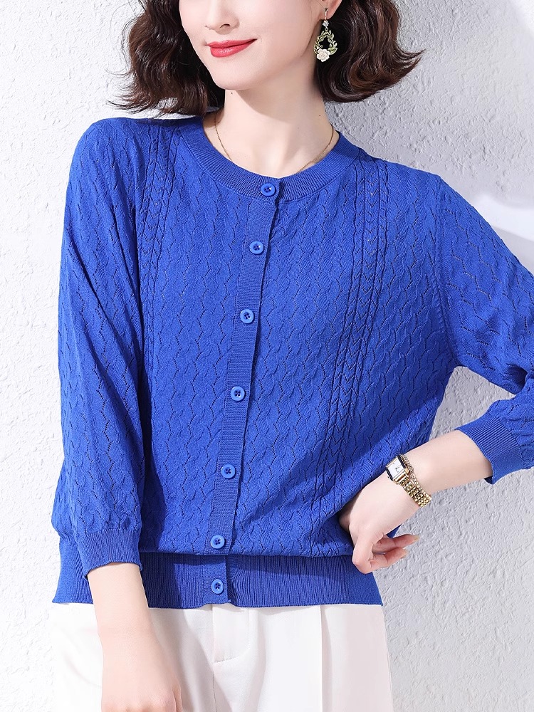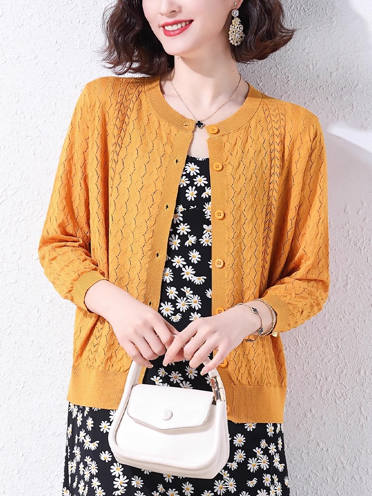 冰丝开衫女外搭薄款短款针织外套夏季镂空桑蚕丝防晒妈妈空调衫夏