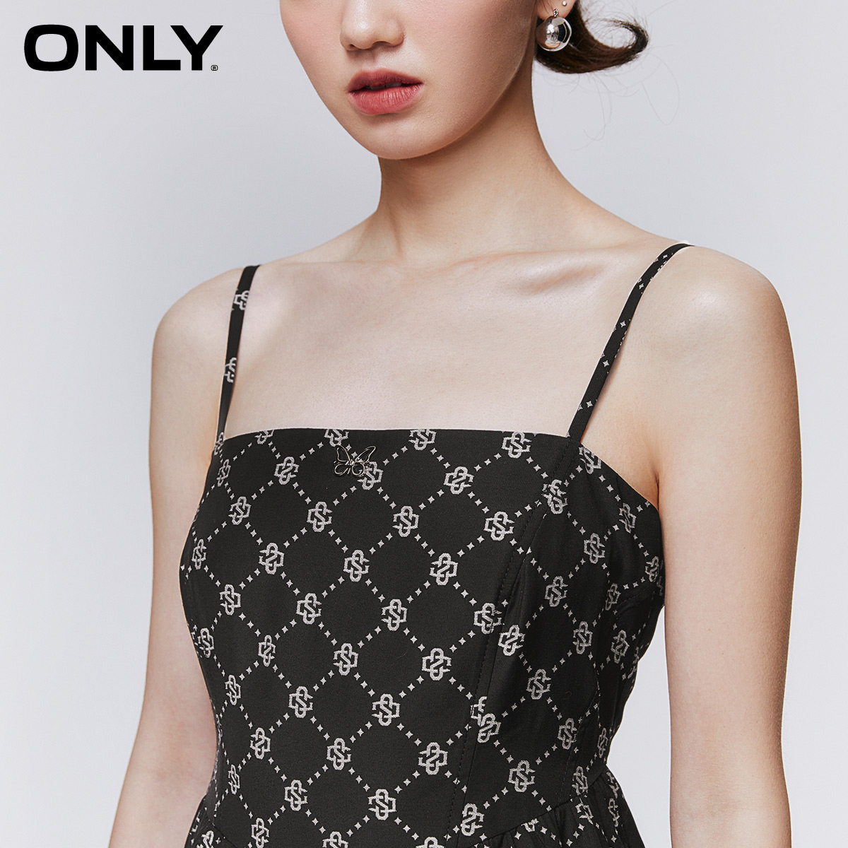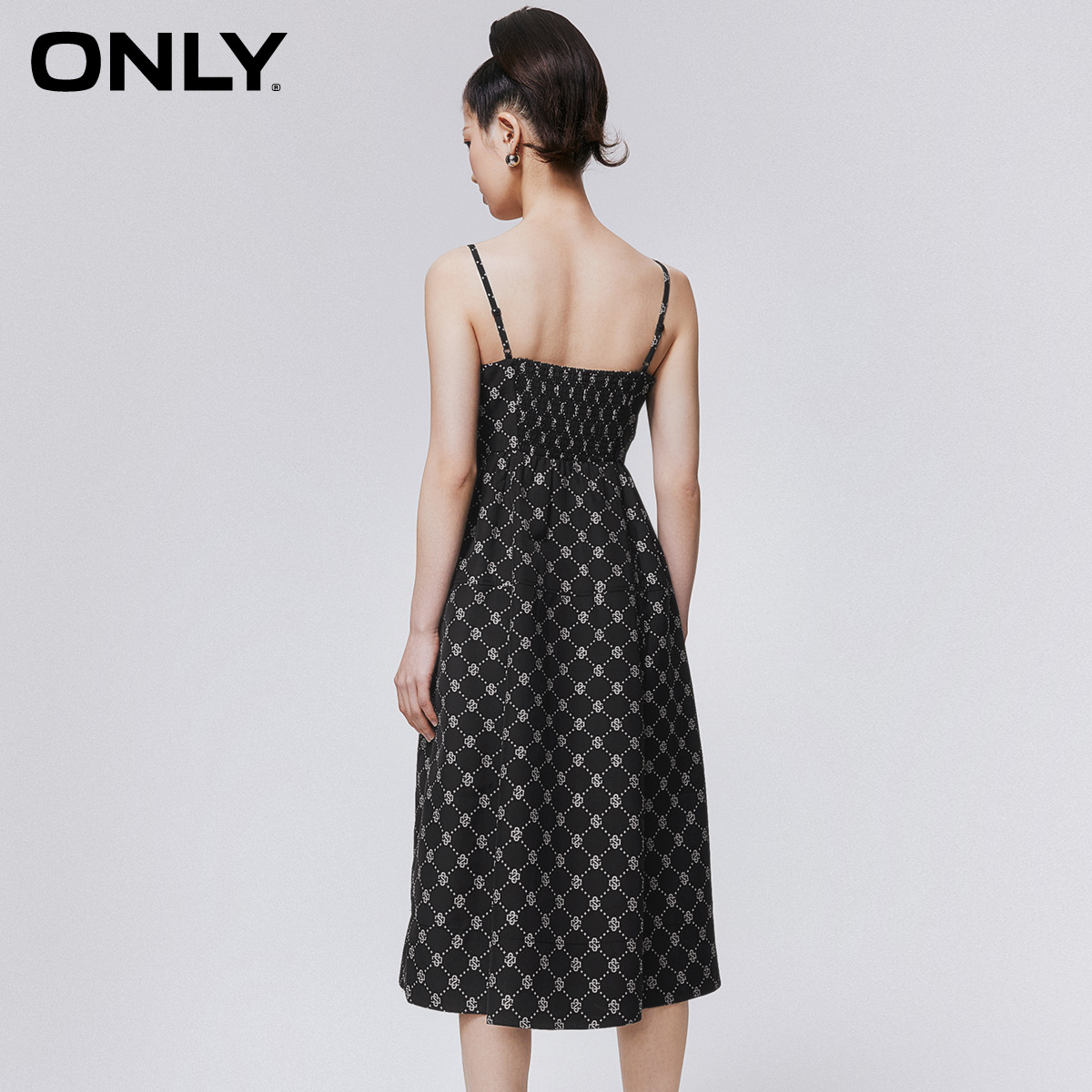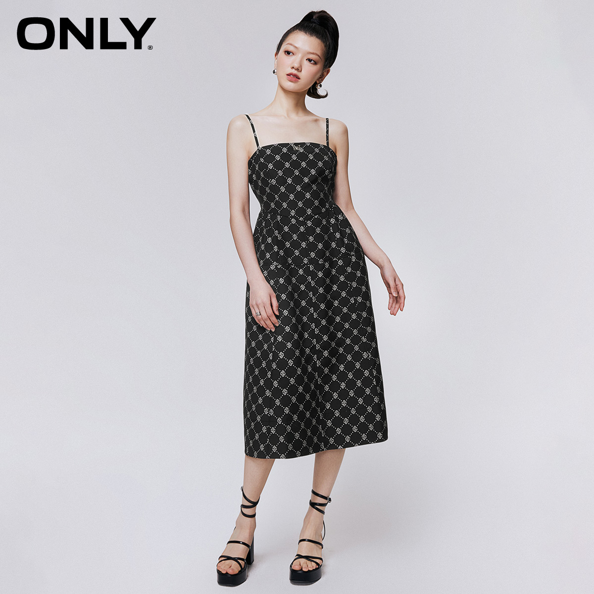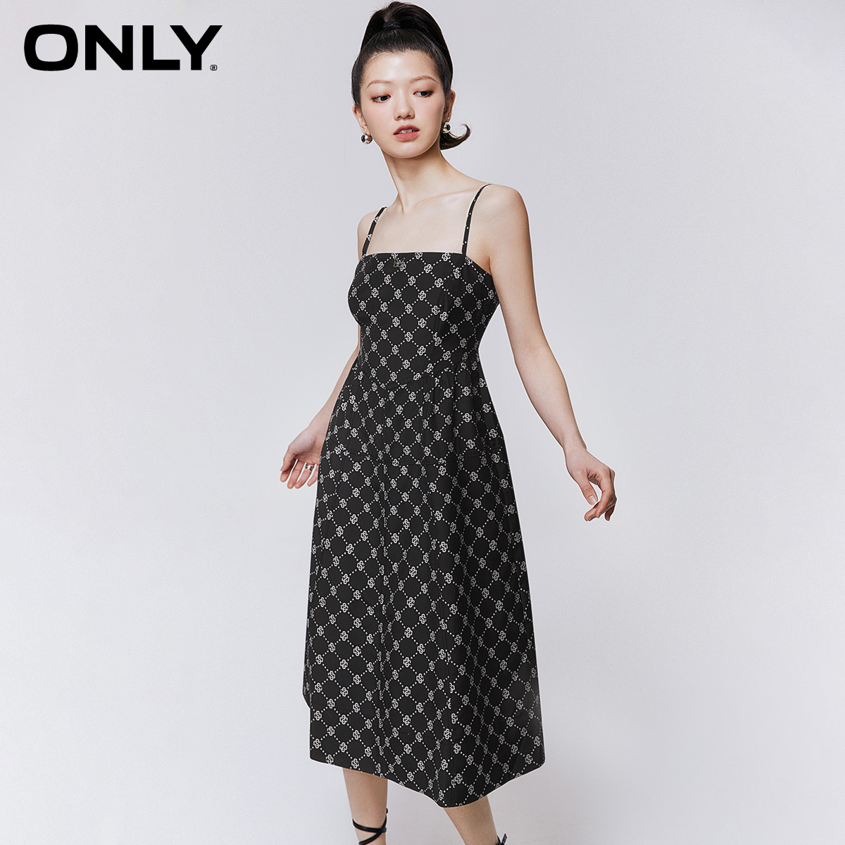 ONLY满印收腰吊带中长款连衣裙