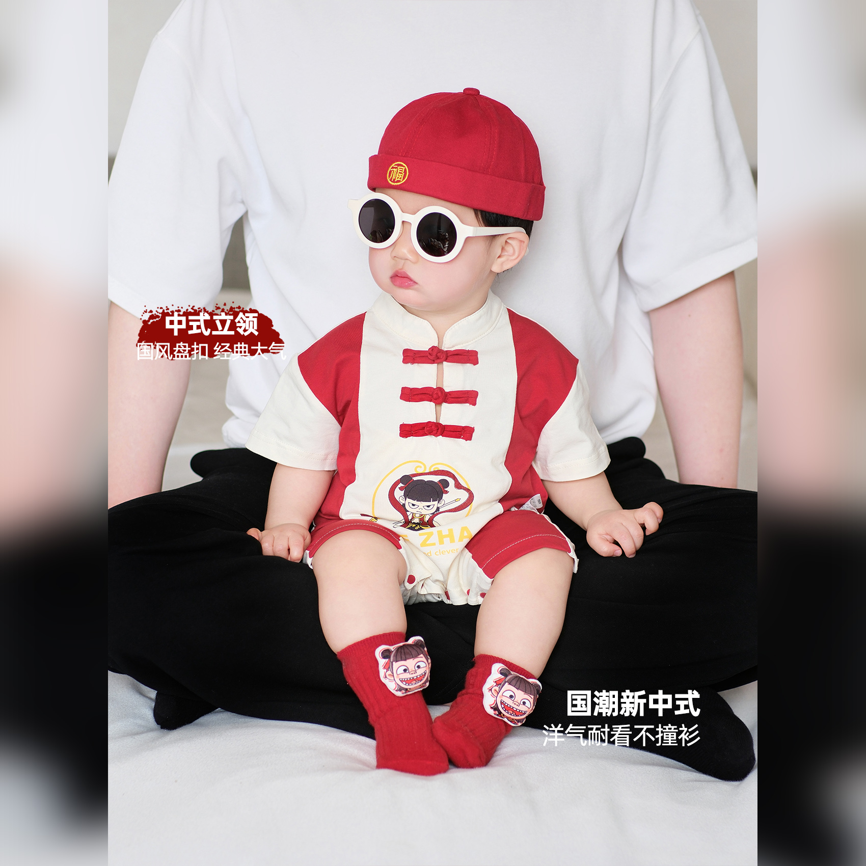 婴儿短袖连体衣夏季薄款百天宝宝衣服夏装新生幼儿抓周外出爬爬服