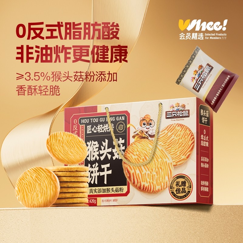 会员精选-三只松鼠黄油曲奇+猴头菇饼干礼盒