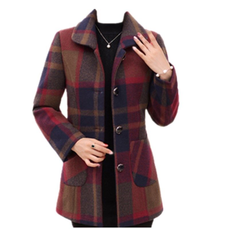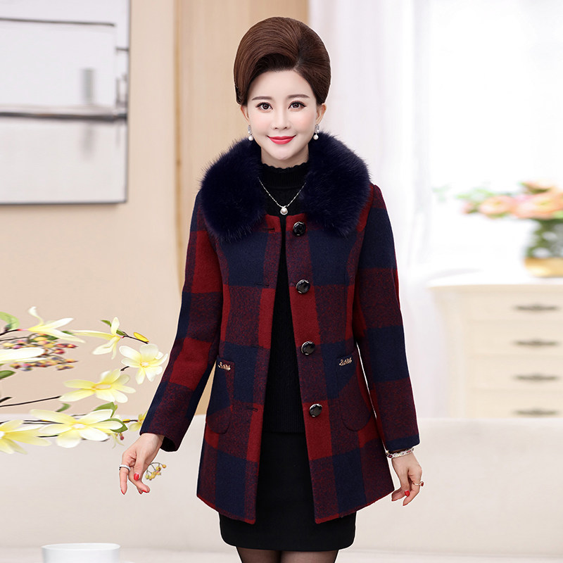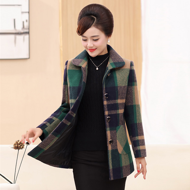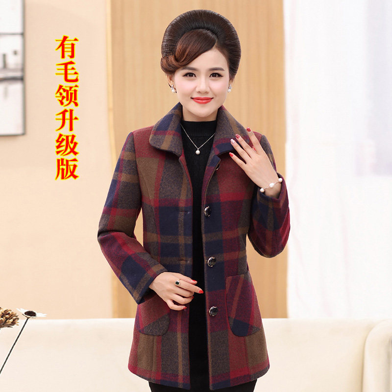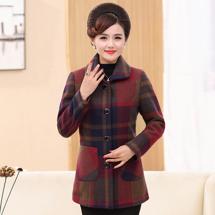妈妈装毛呢格子外套中老年女装40-50岁中年妇女秋冬大码呢子大衣
