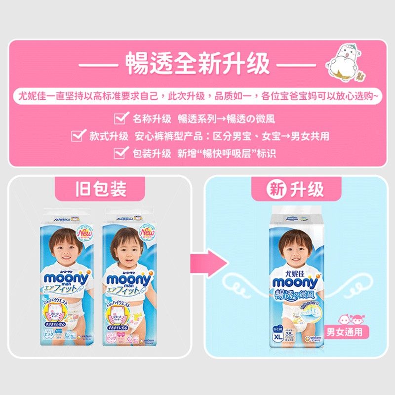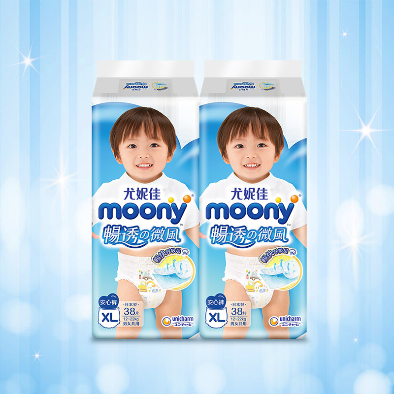 尤妮佳moony畅透拉拉裤XL38片超薄透气尿不湿男女通用裤型纸尿裤